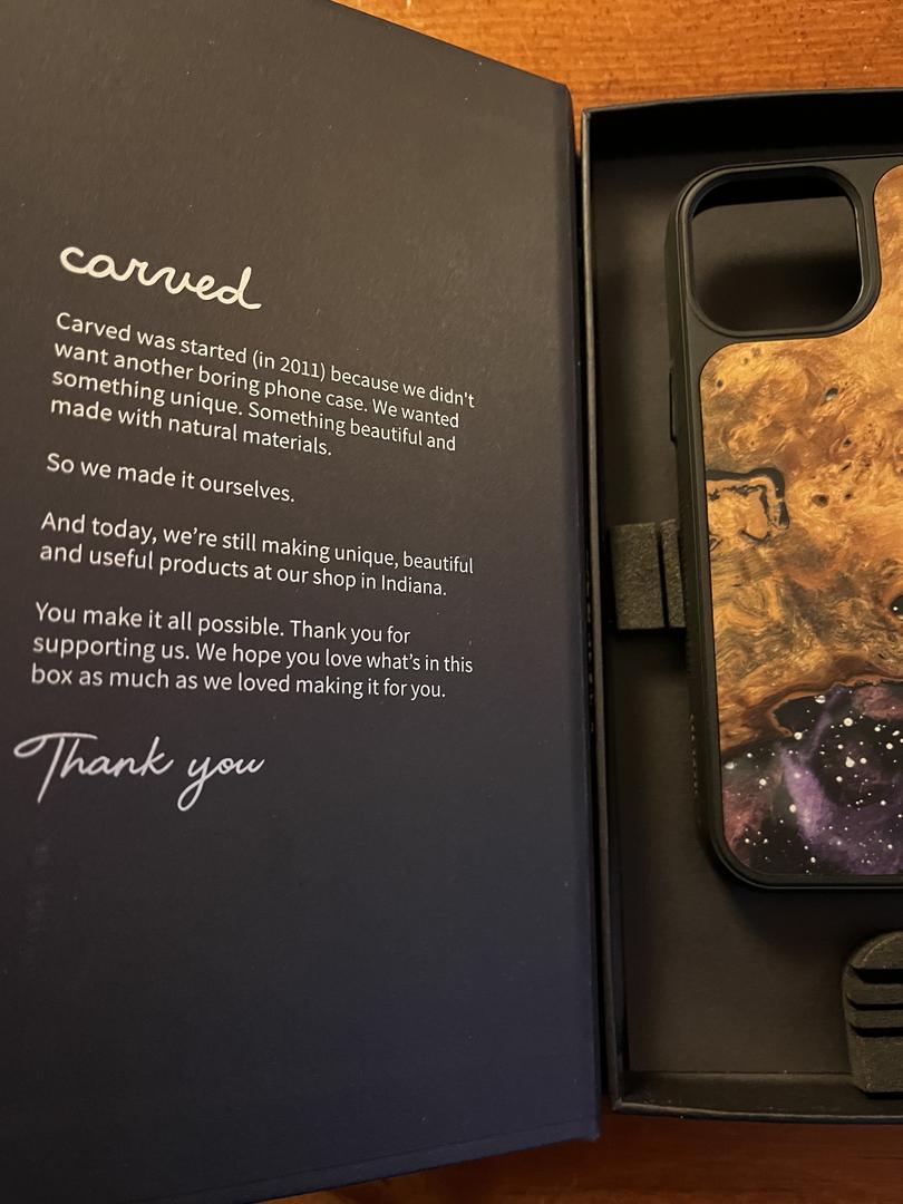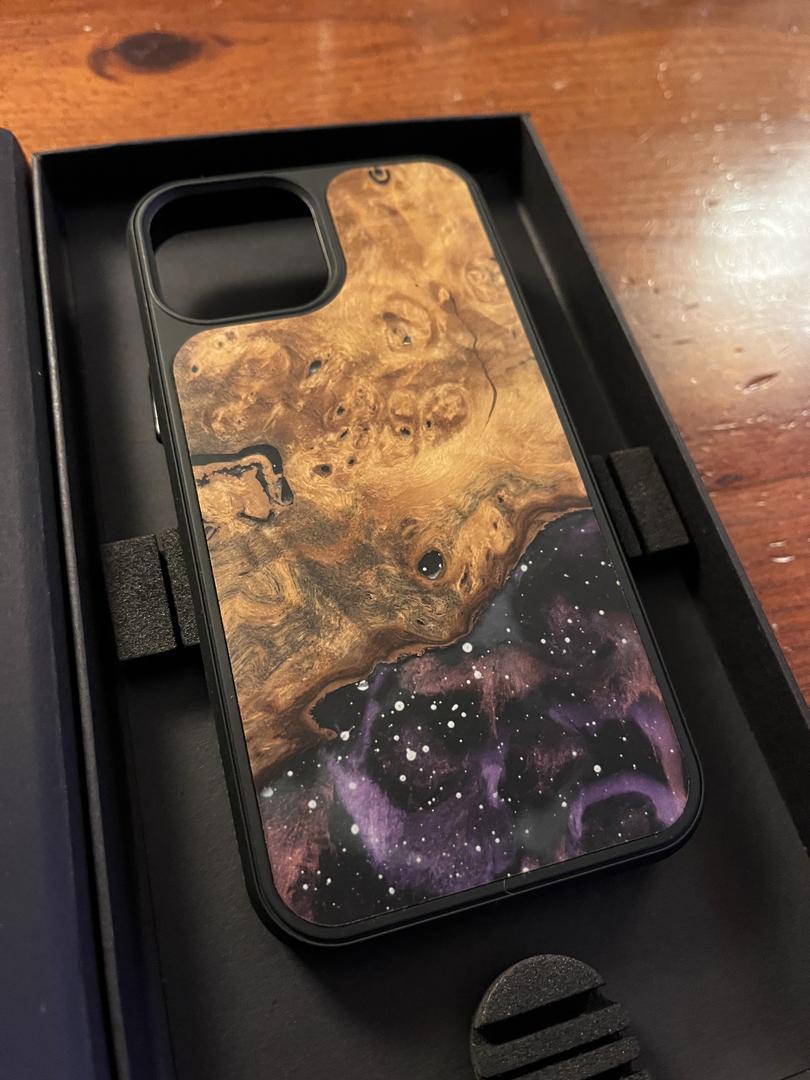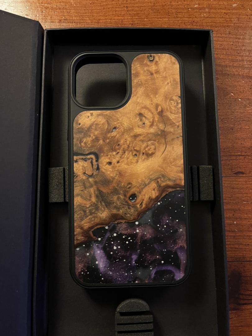 Phone has fewer than 100 cycles on it and is in like-new condition. Had a screen protector on since day one, no scratches on the screen or body at all. (One mark on the screen protector, top right corner, as pictured; the phone screen is untouched.) Comes in original box with papers and charger, plus two unused clear cases, an Encased belt clip holster, as well as a one of a kind wood and resin case from Carved.