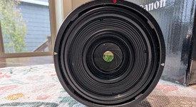 I hardly ever use this lens, so it's time for it to go. There are no marks on the body or glass. Comes with box, caps, and lens hood.