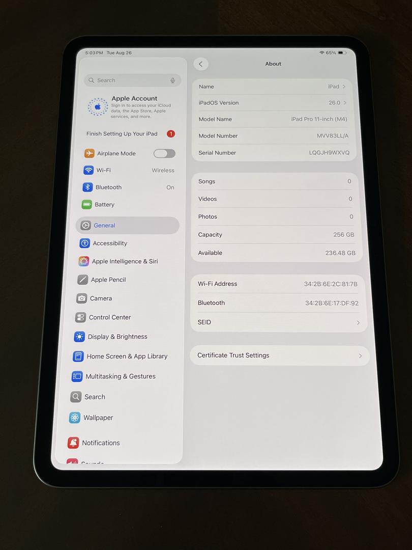 iPad Pro M4 11" WiFi (Space Gray) MINT. 256GB storage.