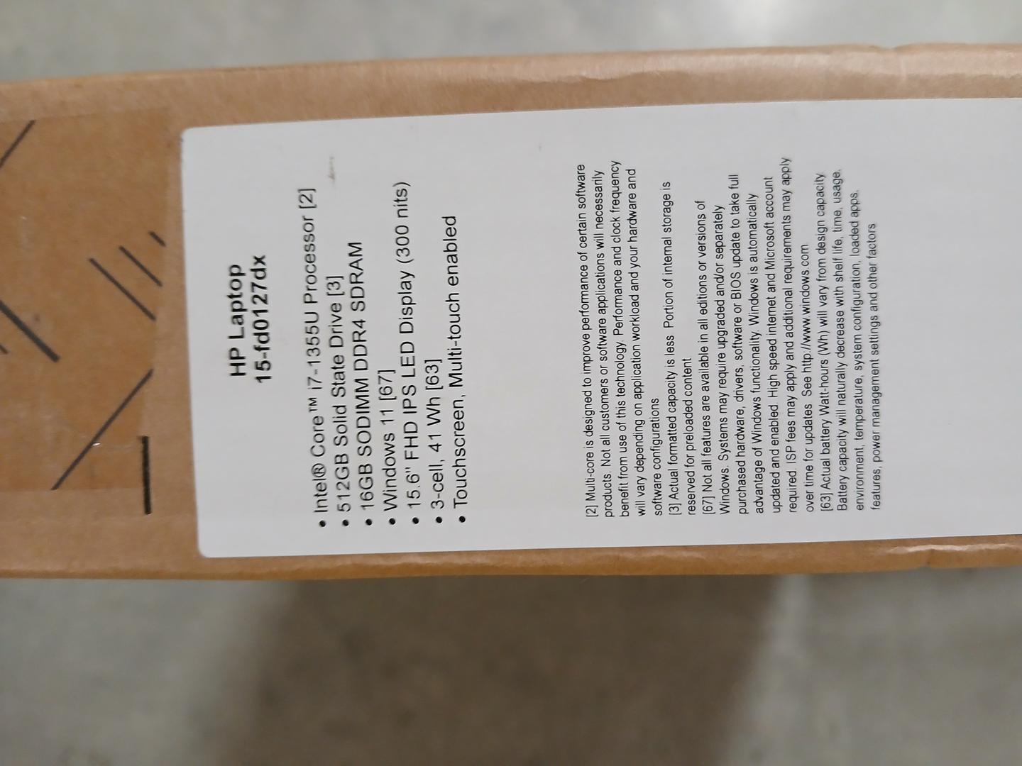 NEW IN THE BOX HP LAPTOP #15fd0127dx 15.6 touch screen intel i7 - 16gb-512 ggb ssd