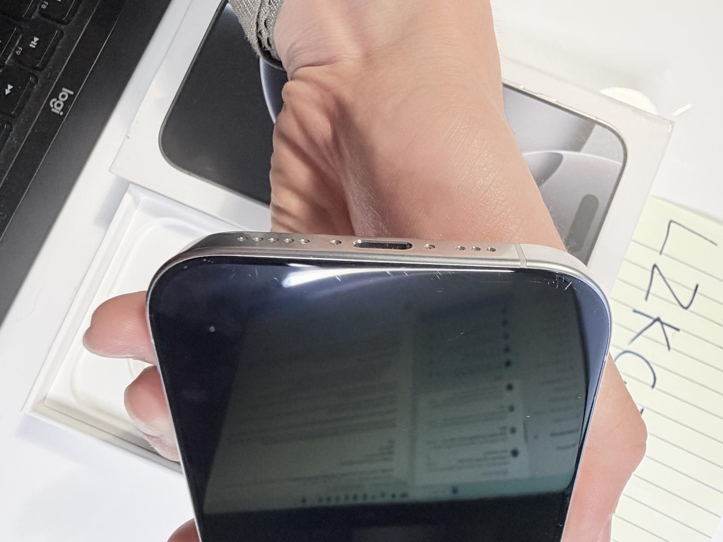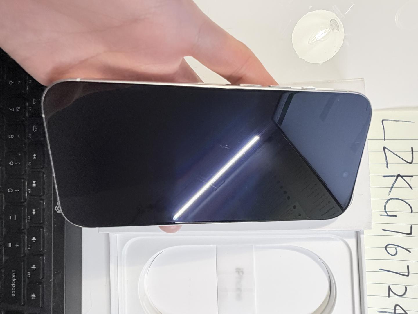 Scratches on the screen and frame are shown in photos. Back glass is like new. All functions are normal.