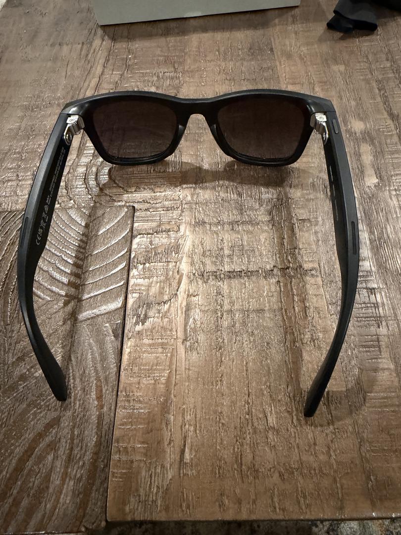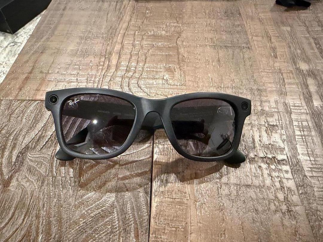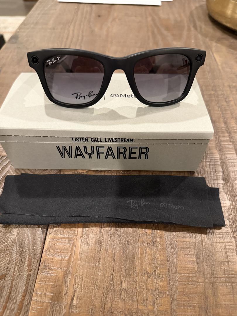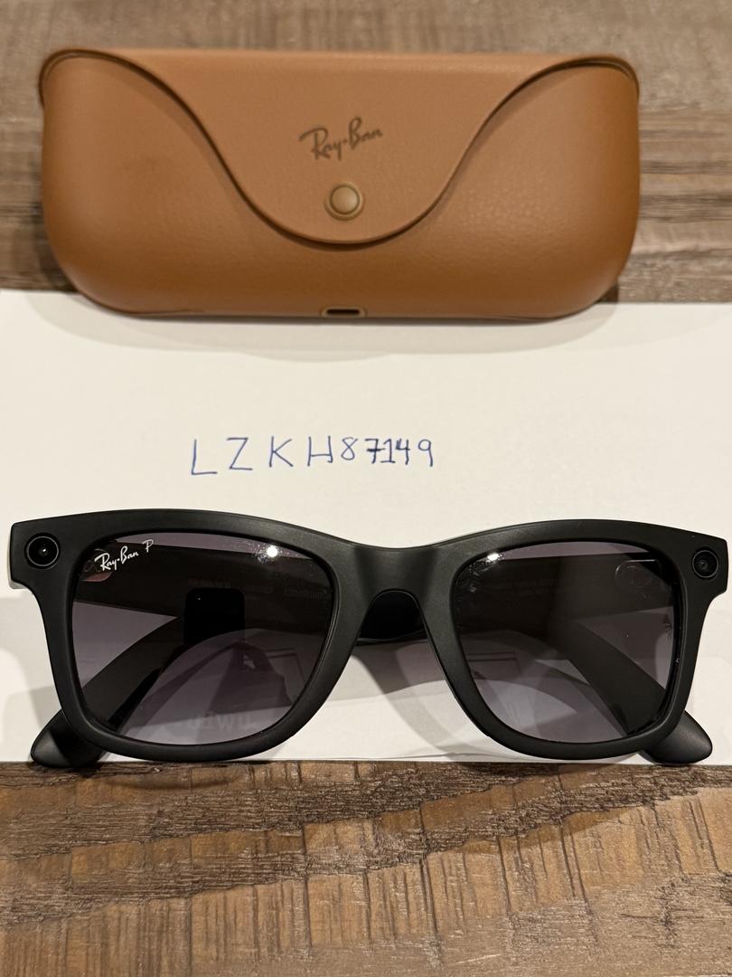 First Gen Ray-Ban Meta sunglasses with matte black frame and polar gradient graphite lenses. Like new and includes glasses, charging case, microfiber cloth, and original packaging.