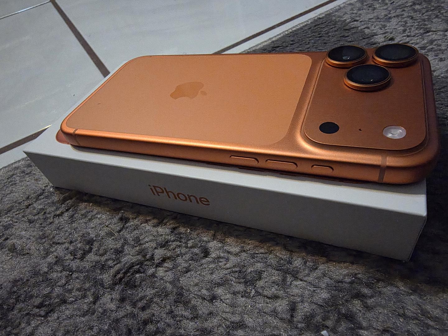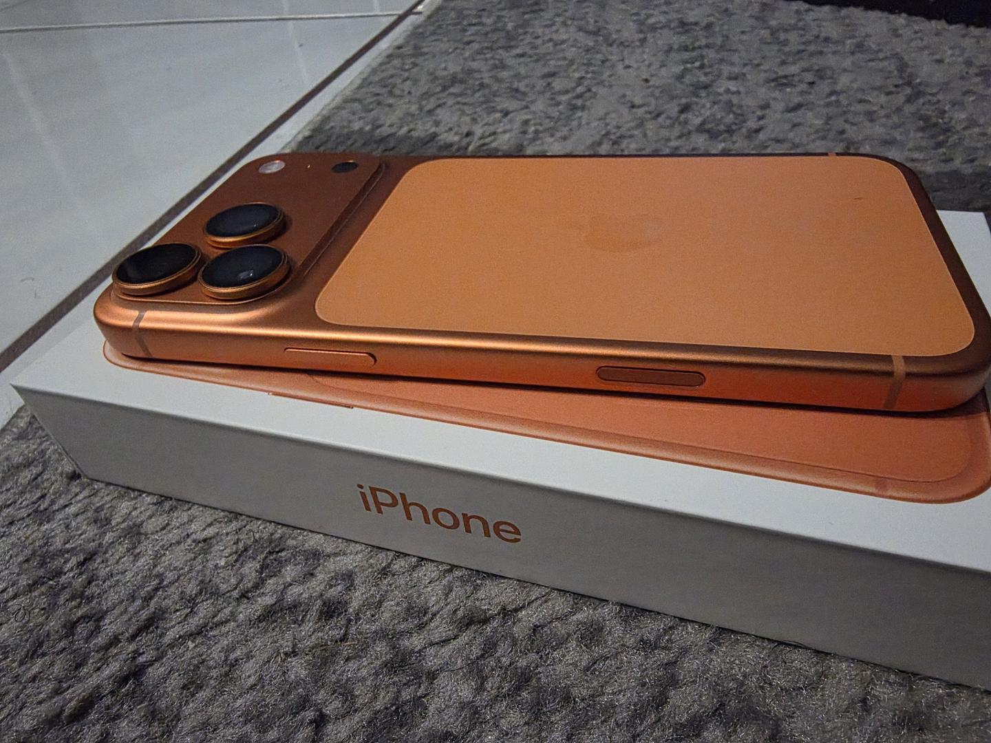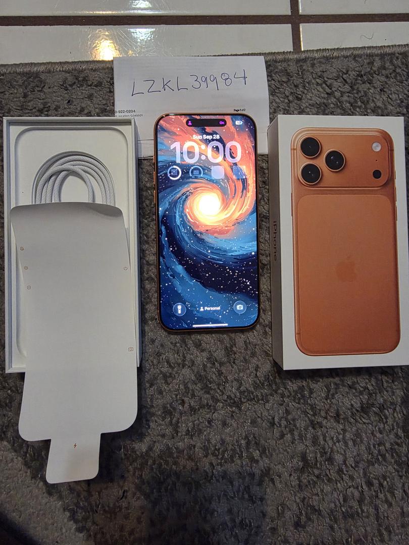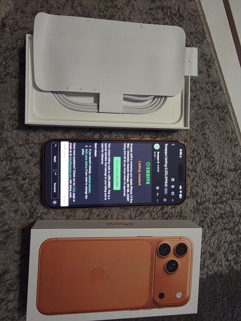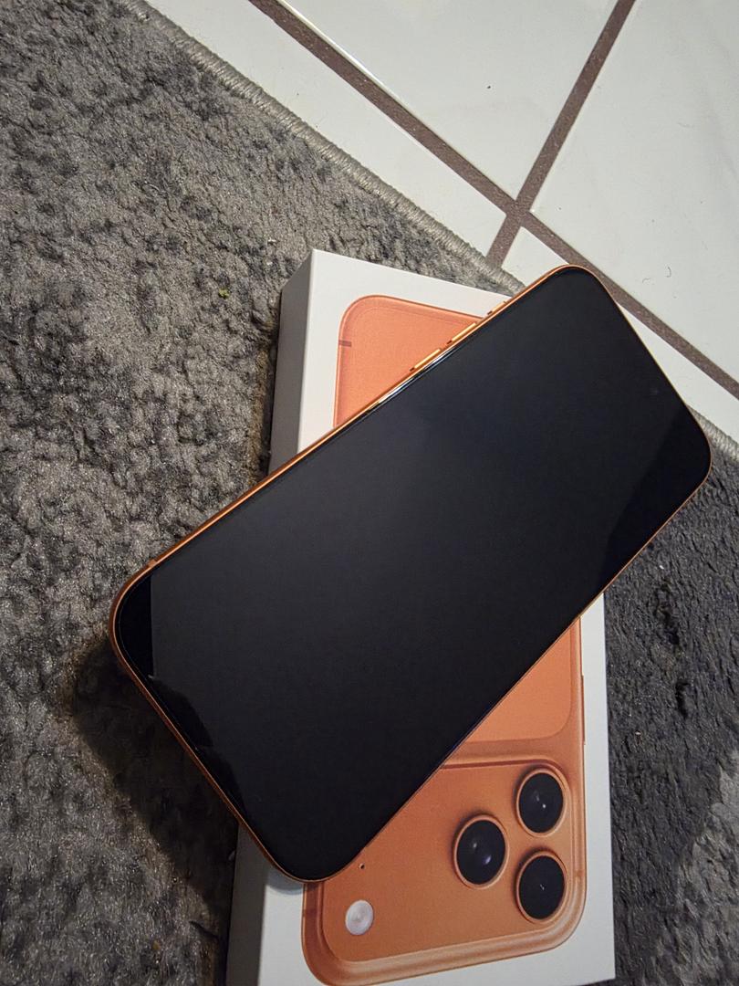 Selling my week old Apple iPhone 17 Pro Max in cosmic orange purchase directly from Apple Store unlocked for any network was only use for a day. Absolutely no sign of wear has a screen protector and camera lens protector since day one also includes Original box and usb C charging cable included