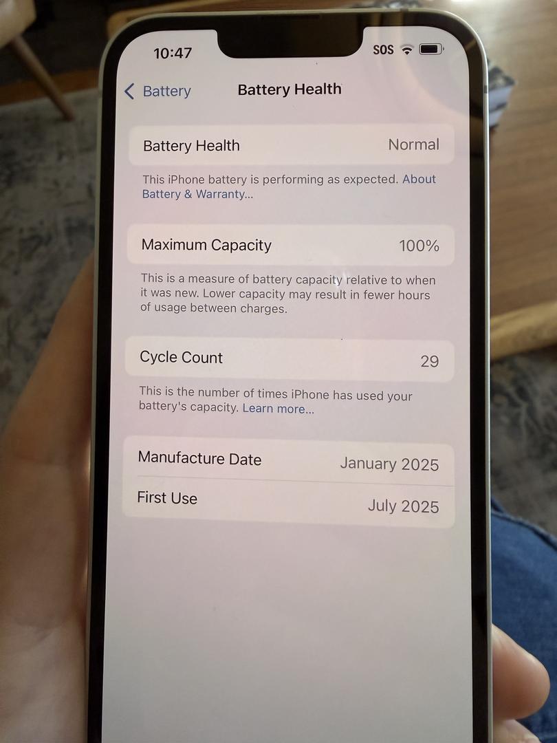 Battery is still at 100%. I had erased the phone without checking it, so I had to sign back in and now have erased again. I will add a photo of battery health screen.