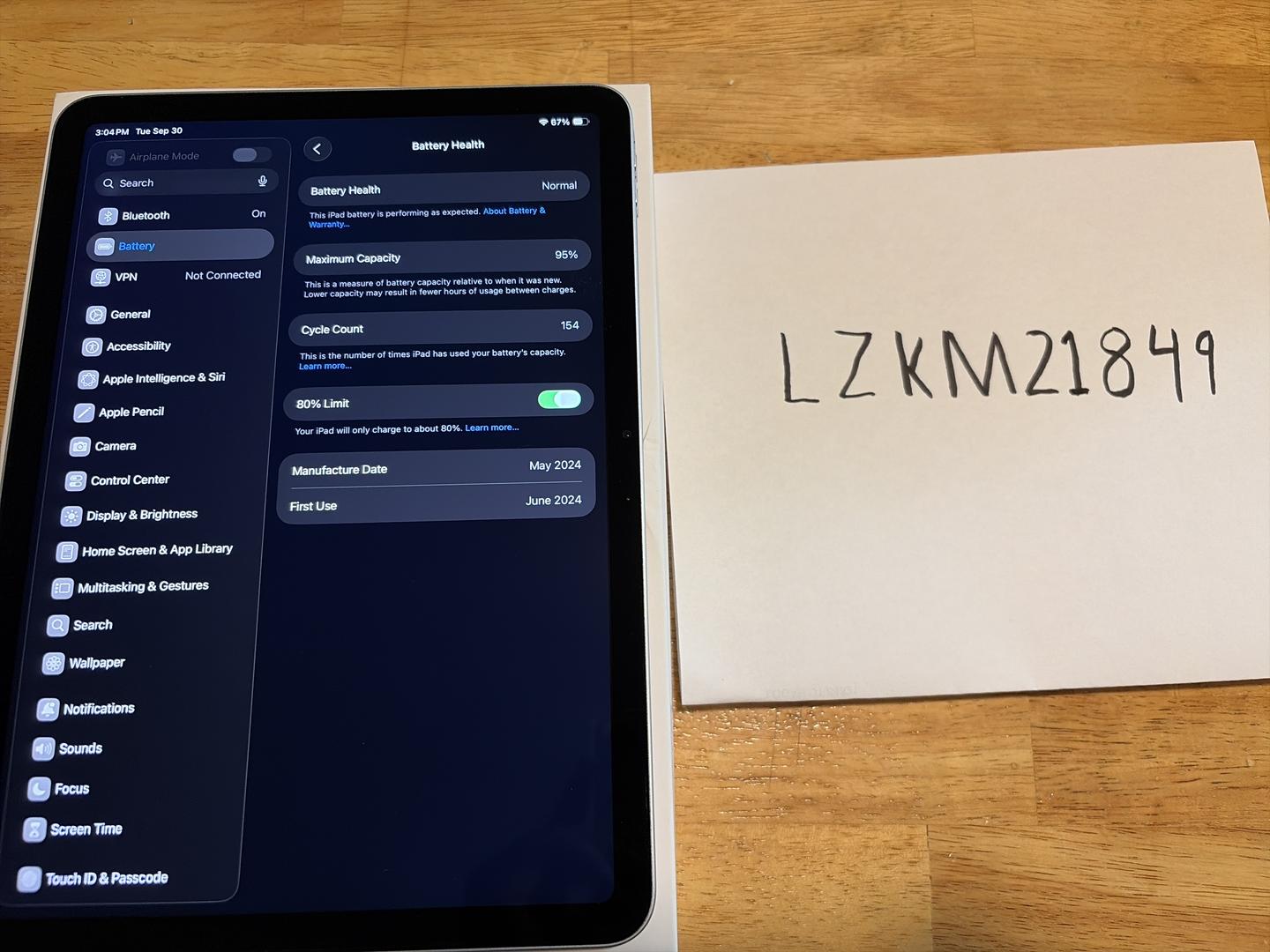 95% battery capacity, 154 cycles