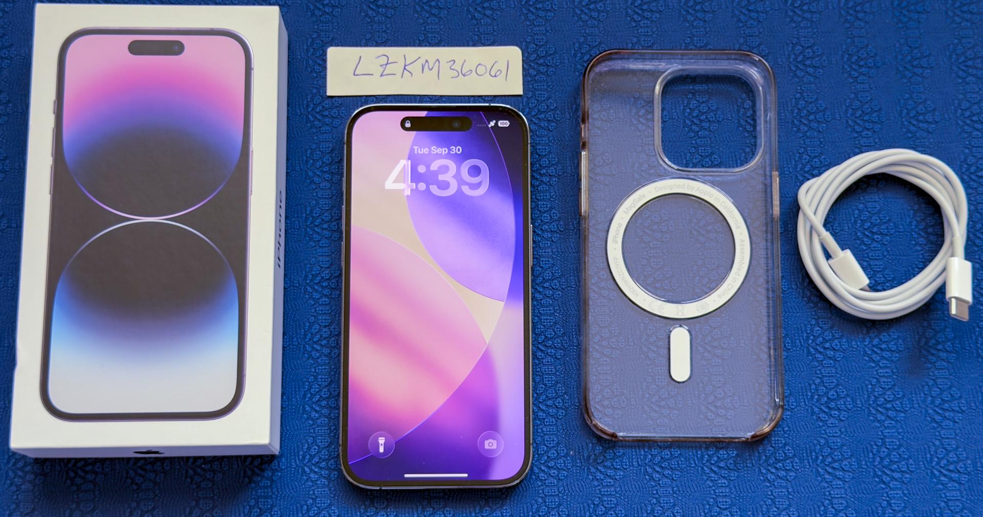Unlocked iPhone 14 Pro in excellent condition. Always had screen protector and case since day one. Also including a decent clear Mag Safe case and a charging cable.r