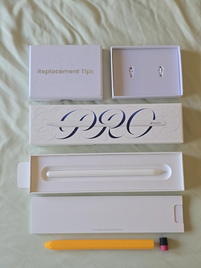 2) Apple Pencil Pro with protective case and 2 extra replacement tips