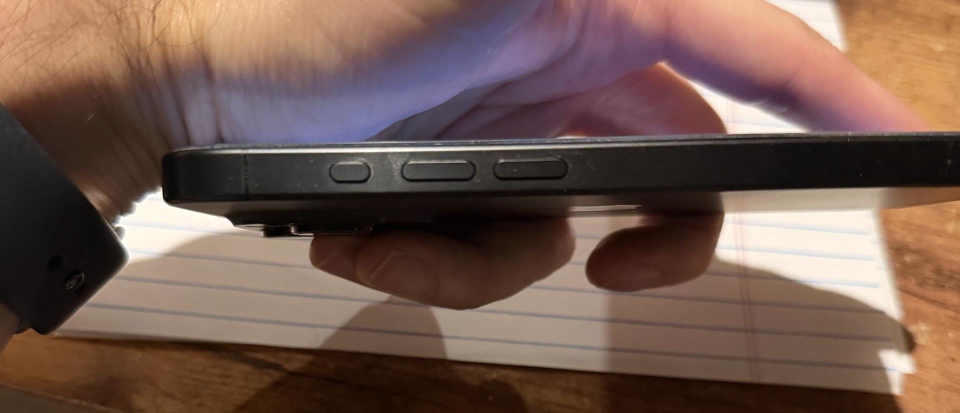 no repairs made. case at all times and screen protector at all times. some dust build up in the speakers is really all that it has