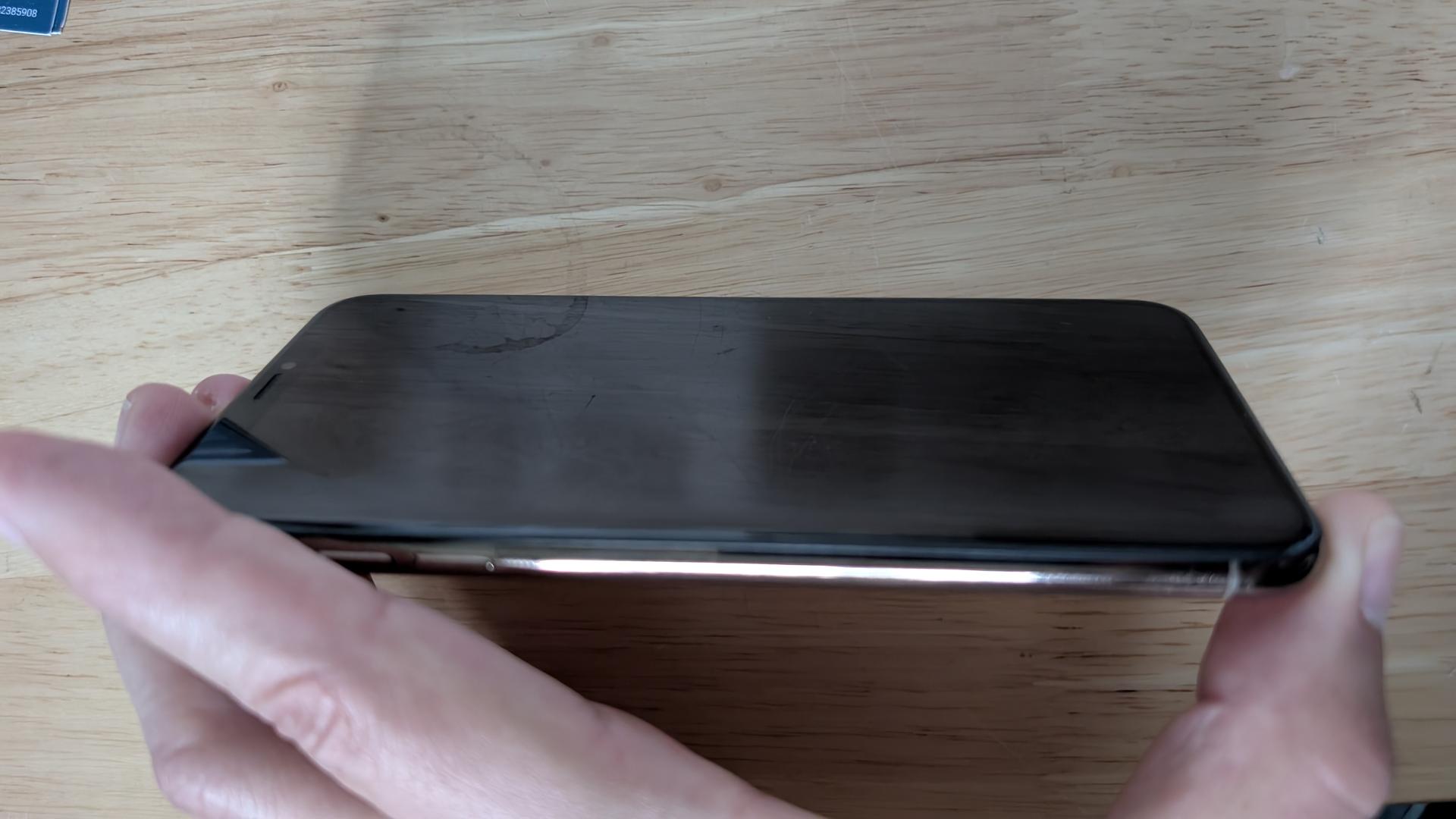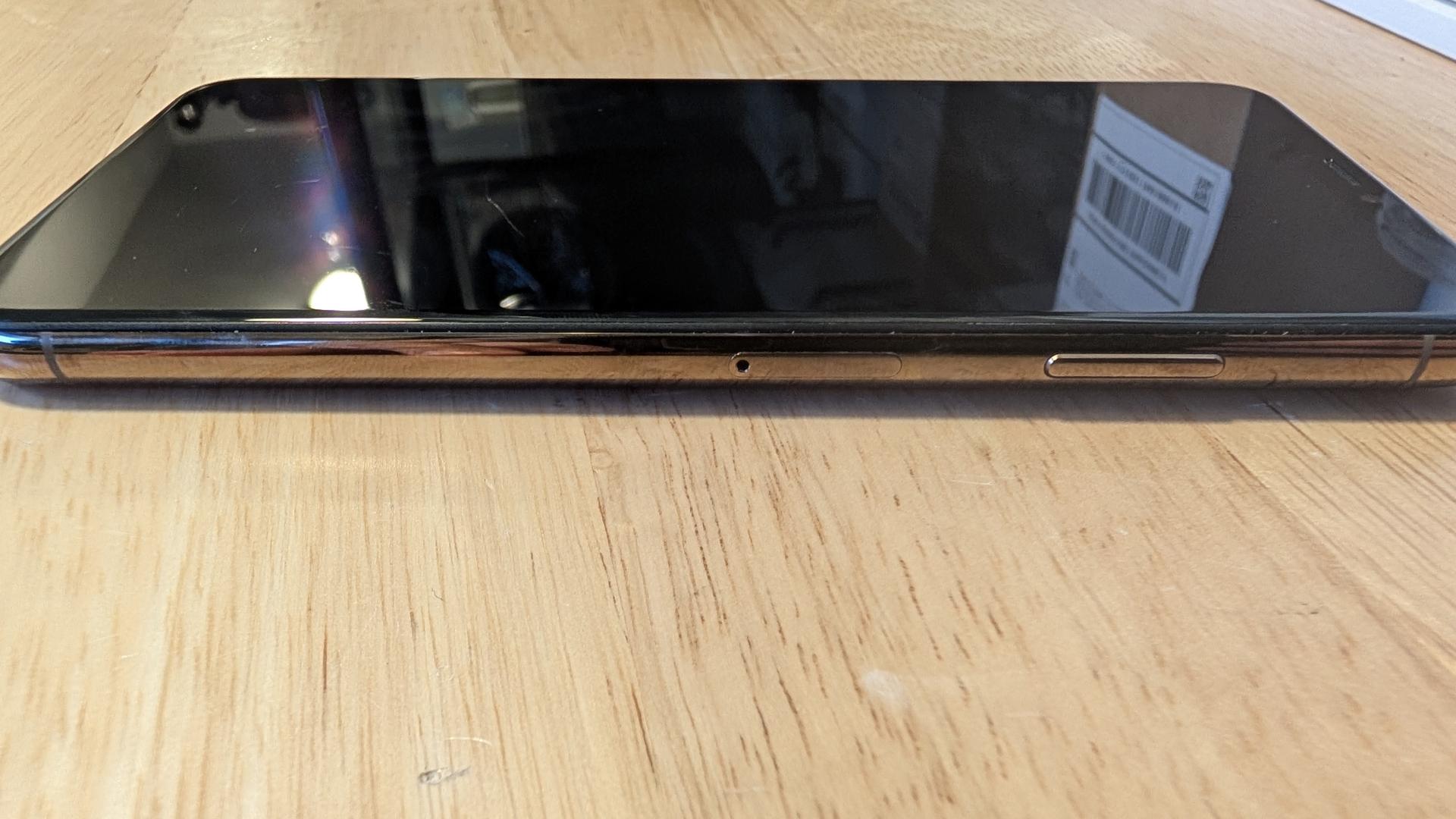 Scratch on the screen which is barely noticeable. I had to take about 15 minutes to get the phone in the right angle to be able to capture it because you only can see it at a certain angle with the light on it.