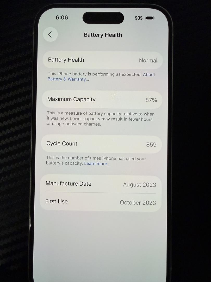 - Battery health: 87%