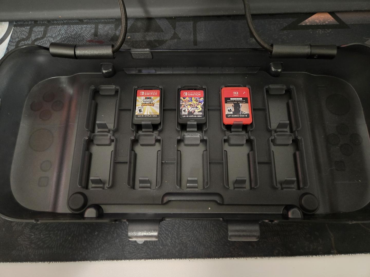 Selling Switch 2 as i play more PC games and havent found a game worth playing on Switch 2. Comes with the DBrand KillSwitch case and travel case and game cartridge holder along with dock adapter, along with the DBrand screen protector, one is already installed and one comes included. Also included is 3 games; Hitman WoA, Mario Party Jamboree, and Splatoon 3 and finally it comes with all the orignal straps and joycon controller