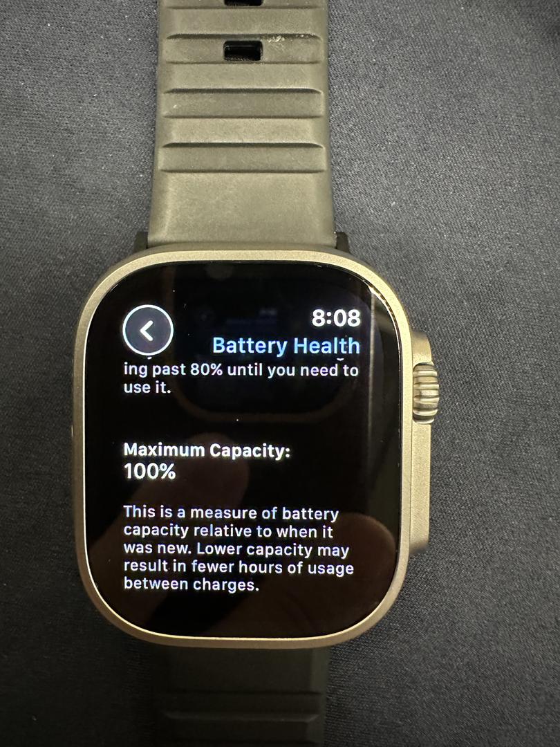This Ultra 2 watch is almost brand new. There are no scratches or nicks. I am only selling it because I am going back to my Garmin. Battery health is 100% capacity. Watch comes with the original box, original charger, original ocean band (with box), plus 4 other bands.