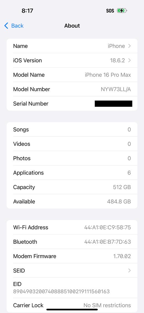 This item is in mint condition. See pictures. The device is fully functional and was recently replaced with Apple Care+. The device has 0 battery cycles and 100% battery capacity. The device is fully functional and has AppleCare+ until Sep 25, 2026. It shows "No Sim Restrictions" as it was purchased unlocked.