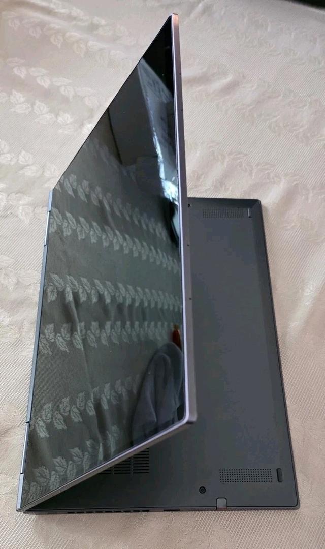 If privacy is a concern, you can shut down the mics entirely, and built into the thin display is a webcam fitted with a physical shutter that slides to block the camera. There is also a finger print reader and this model still has the classic "IBM red button" TrackPoint for those that prefer finer pointer control.