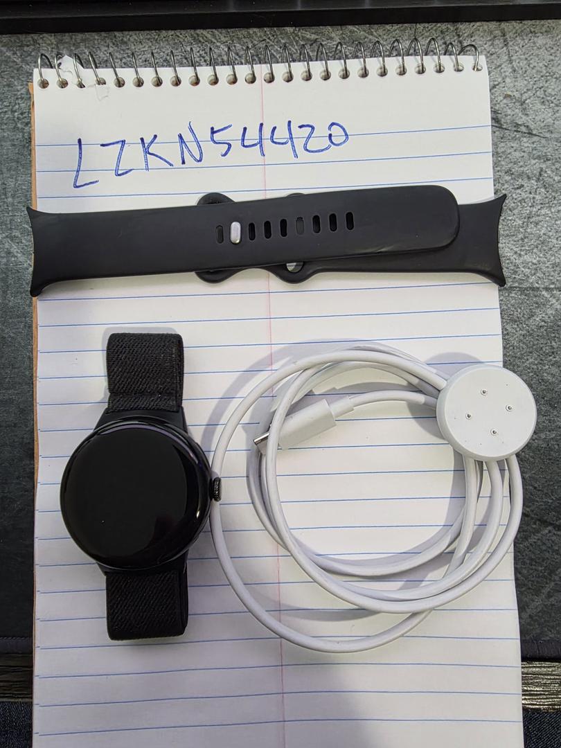 Excellent condition. Includes watch, extra band, and charging cable.