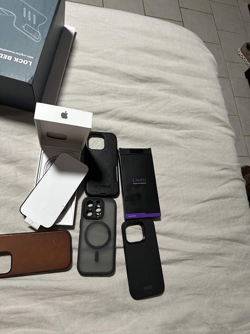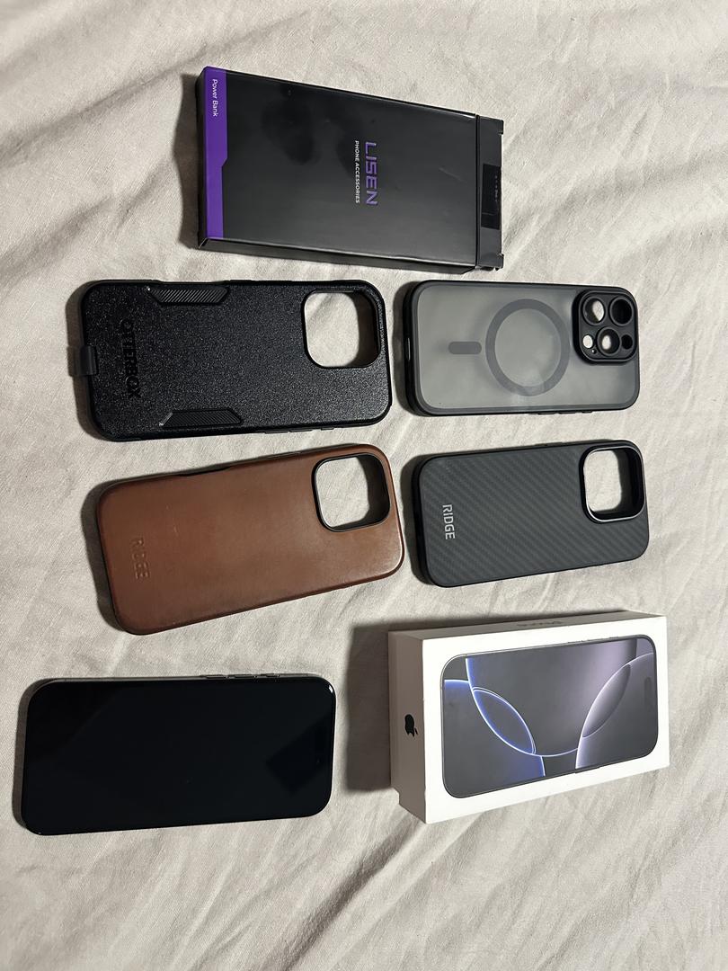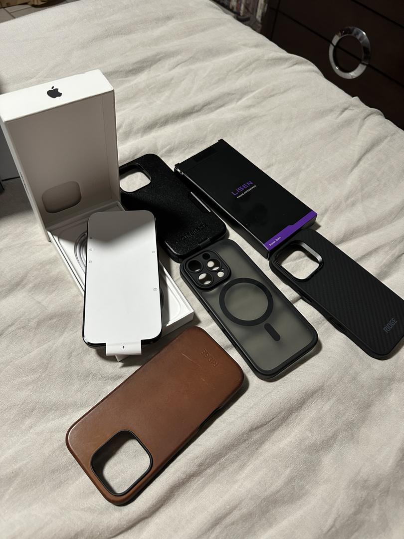 I purchased four used covers they are pictured below. The brown one shows a little more wear, but in good condition and a packet of screen protectors. Two Ridge Covers, an otter box and a silicone cover. The phone was never outside of the case for the week and never was without a screen protector. Phone is Basically New.