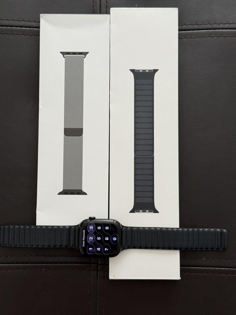 The watch is in pristine condition, no signs of wear and tear. It functions flawlessly. Come with original box and charger cable. Battery Health 100%. The warranty is still up to March 16, 2026. Including two Apple bands: Slate Milanese Loop and Midnight Magnetic Leather Link.