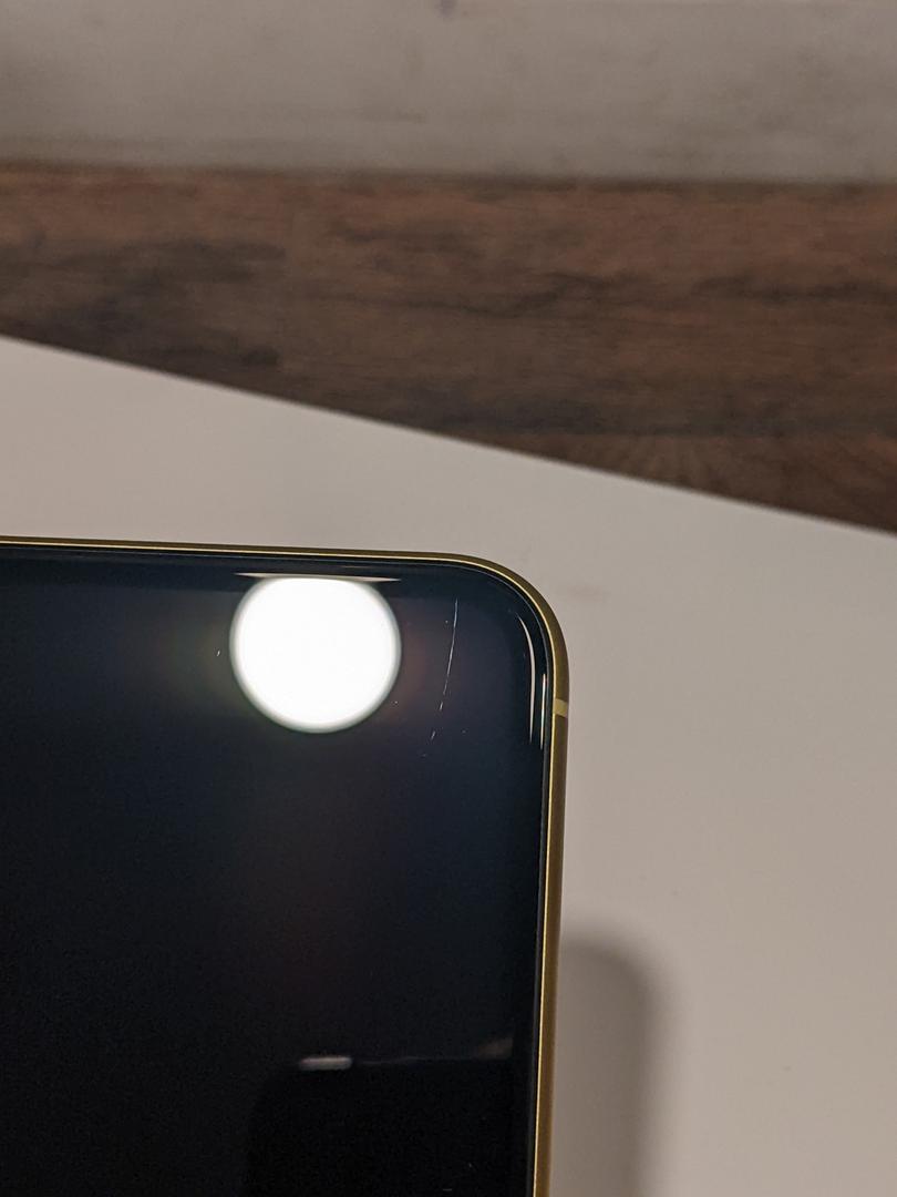There are some minor scratches on the front glass and one that's a little longer on the bottom edge.