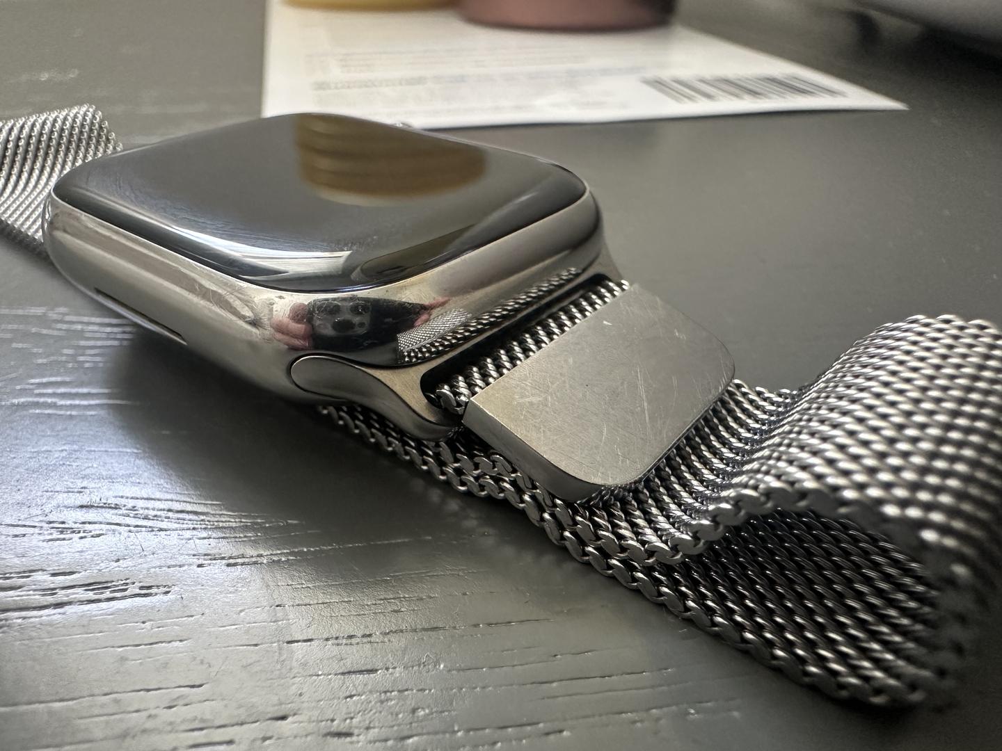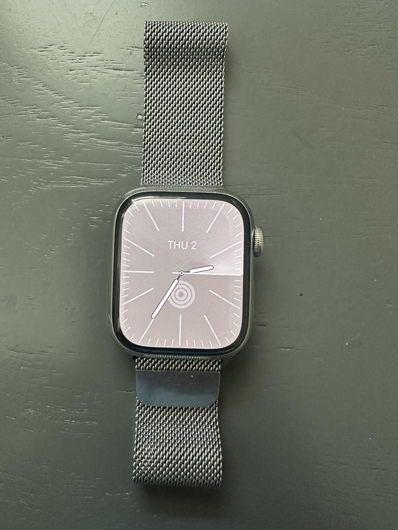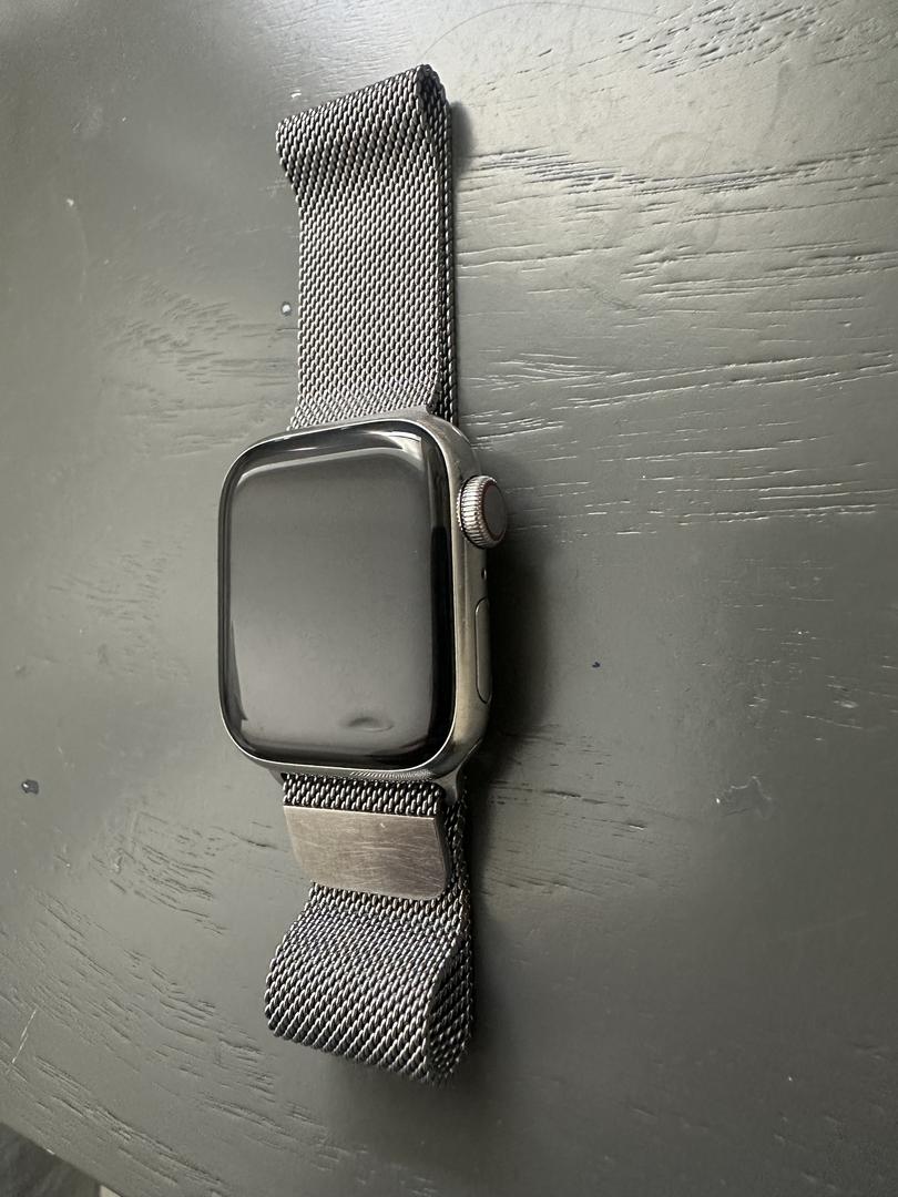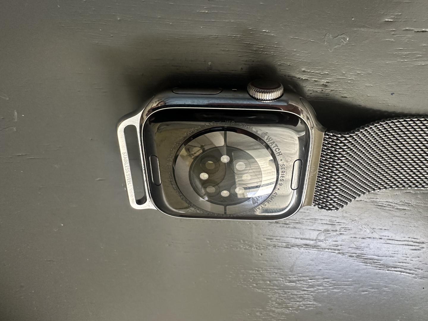 Apple Watch 9 41mm stainless silver with stainless bracelet in mint condition with 89% battery life. Cellular enabled.