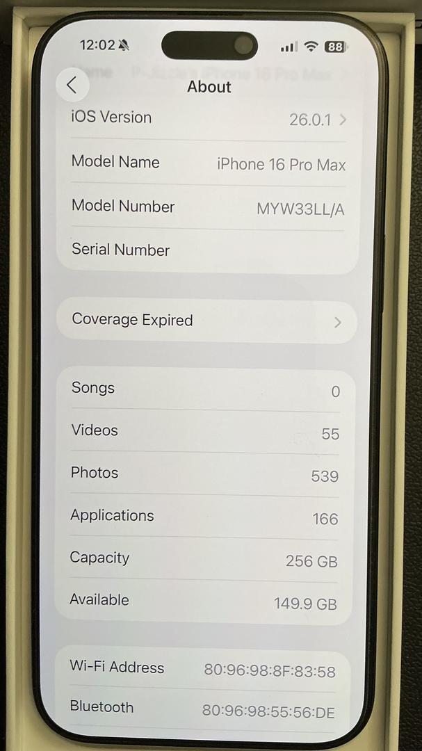 Apple iPhone 16 Pro Max - 256GB. - Black Titanium Mint Unlocked