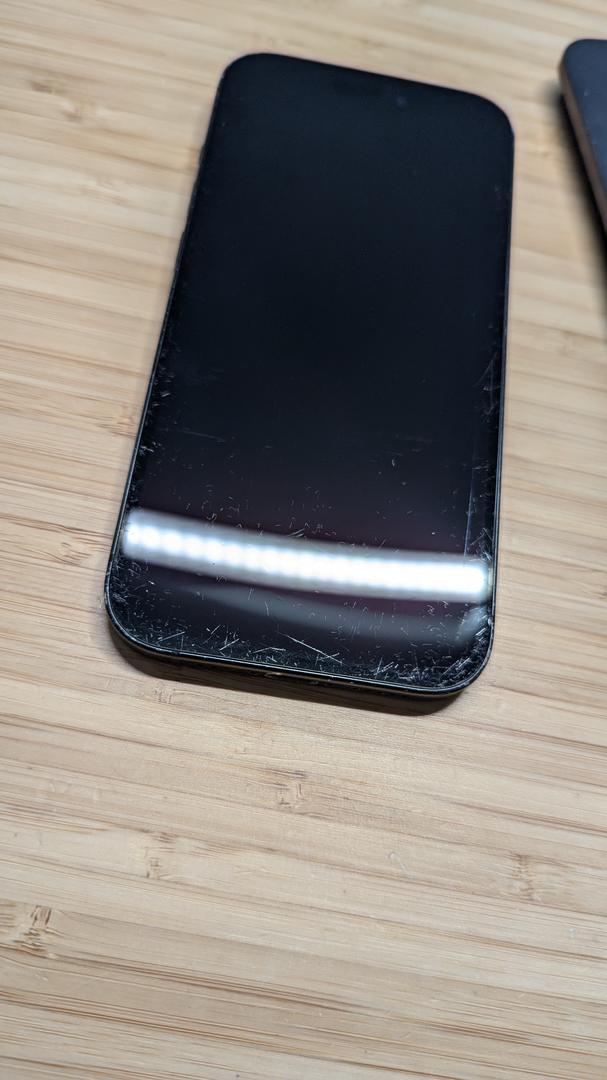 This device in in FAIR with noticeable scratches on the front glass. There is some noticeable wear on the frame and back. Please review the photos.