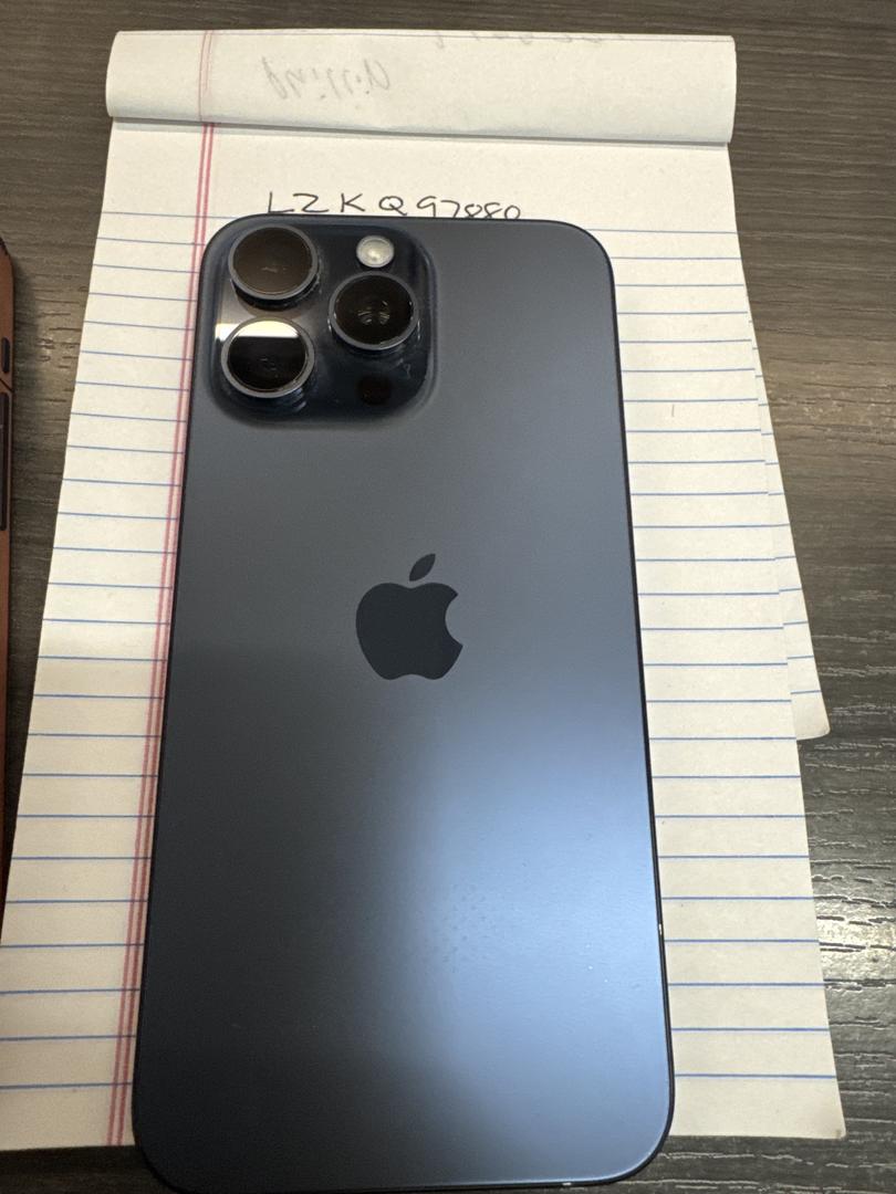 Mint condition iPhone 15 pr max blue 256gb. 84% battery life. Been in a case with screen protector since day one.
