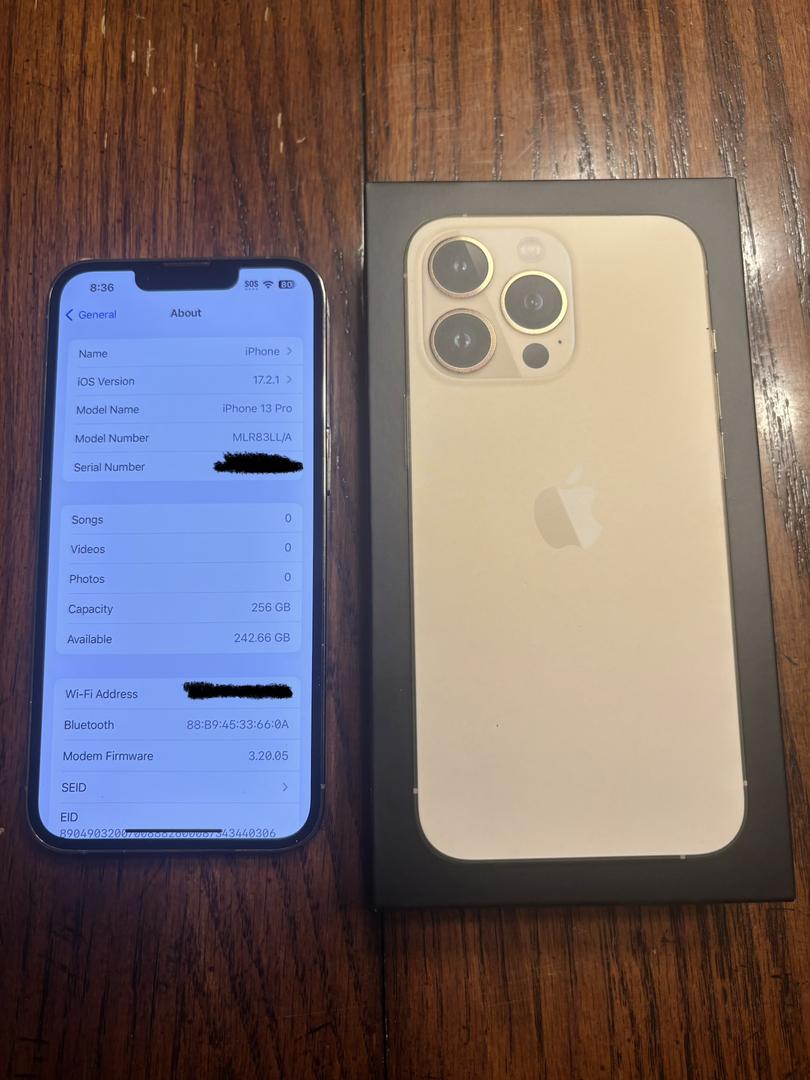 One iPhone 13 Pro in really good shape. Was used on the Verizon network during its life. Has not been in use for over a year. Comes in original box.