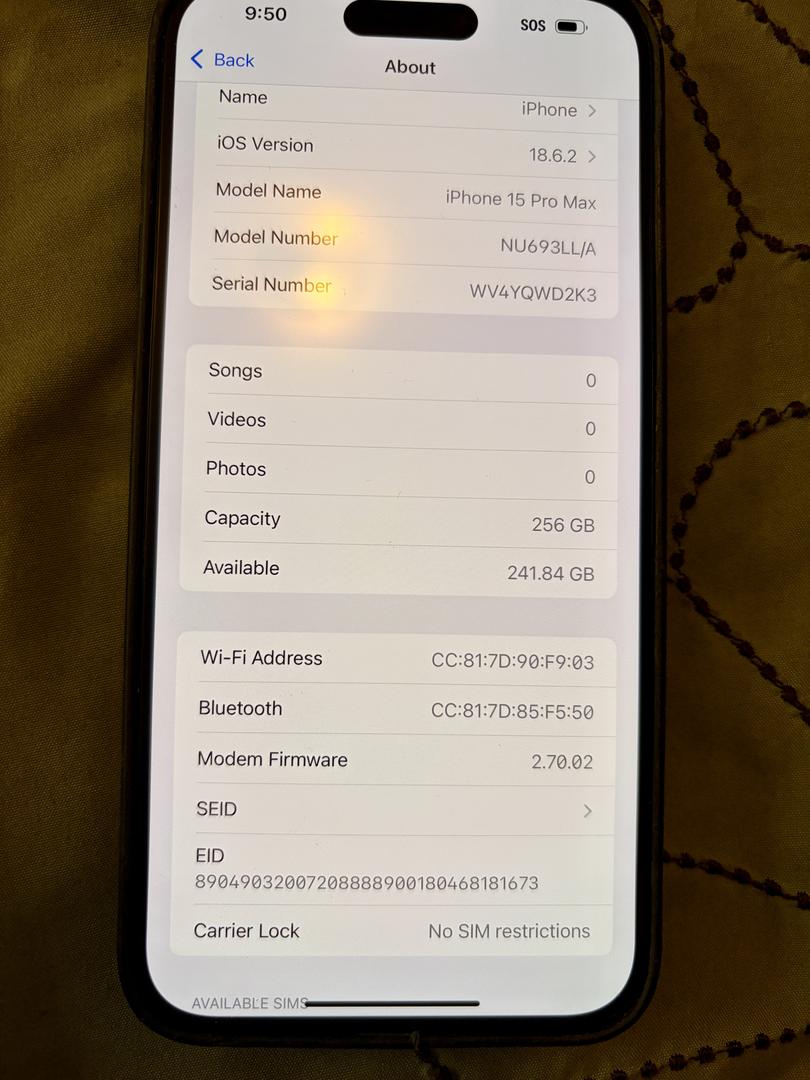 Iphone 15PROMax excellent condition been in APPLE case since day one. Excellent condition. .100% battery health. Unlocked.