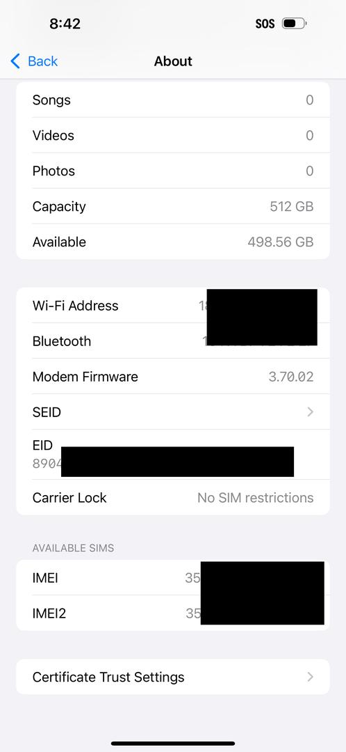 Device details: