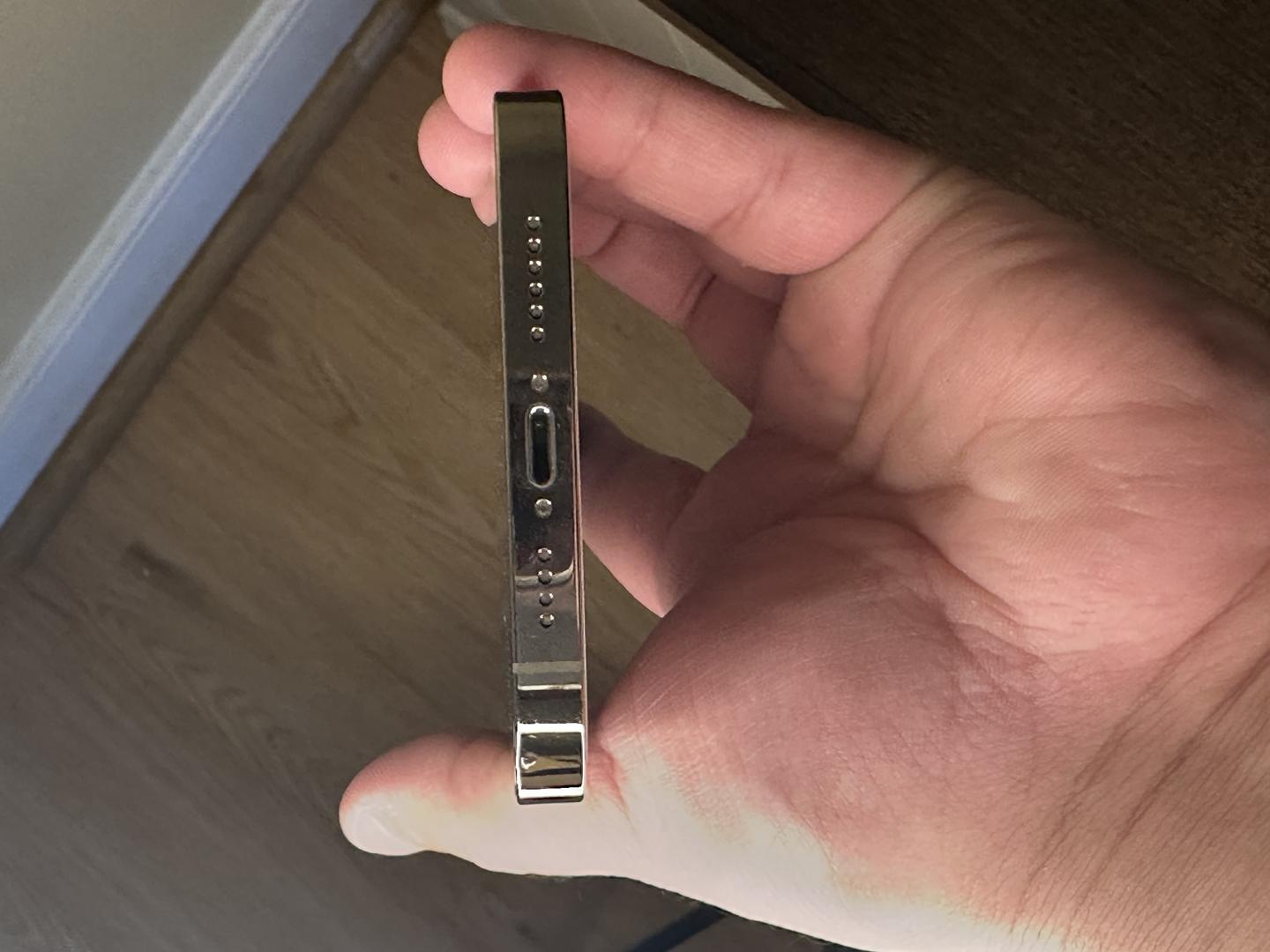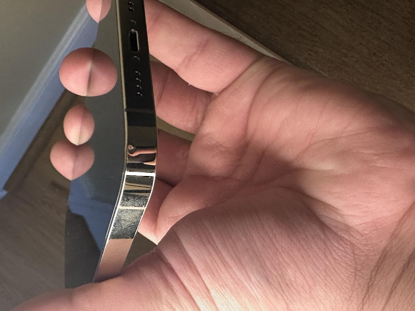 Couple tiny scratches on screen barely visible only under certain lighting and angle. Also tiny dent on bottom left.