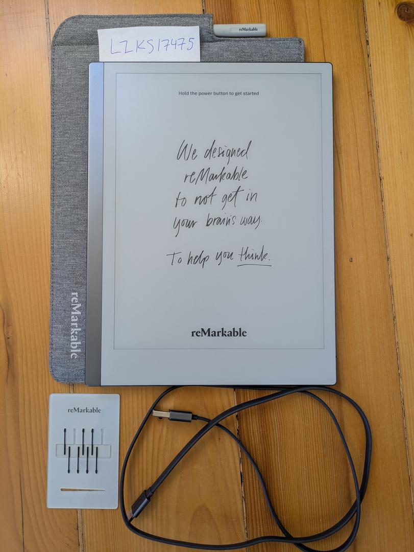This Remarkable 2 is as good as new! I used it for a few months during law school and haven't touched it since. Besides the tablet, it comes with the original Marker (plus 7 replacement tips), standard grey Folio, and a USB A to C cable. It is factory reset.