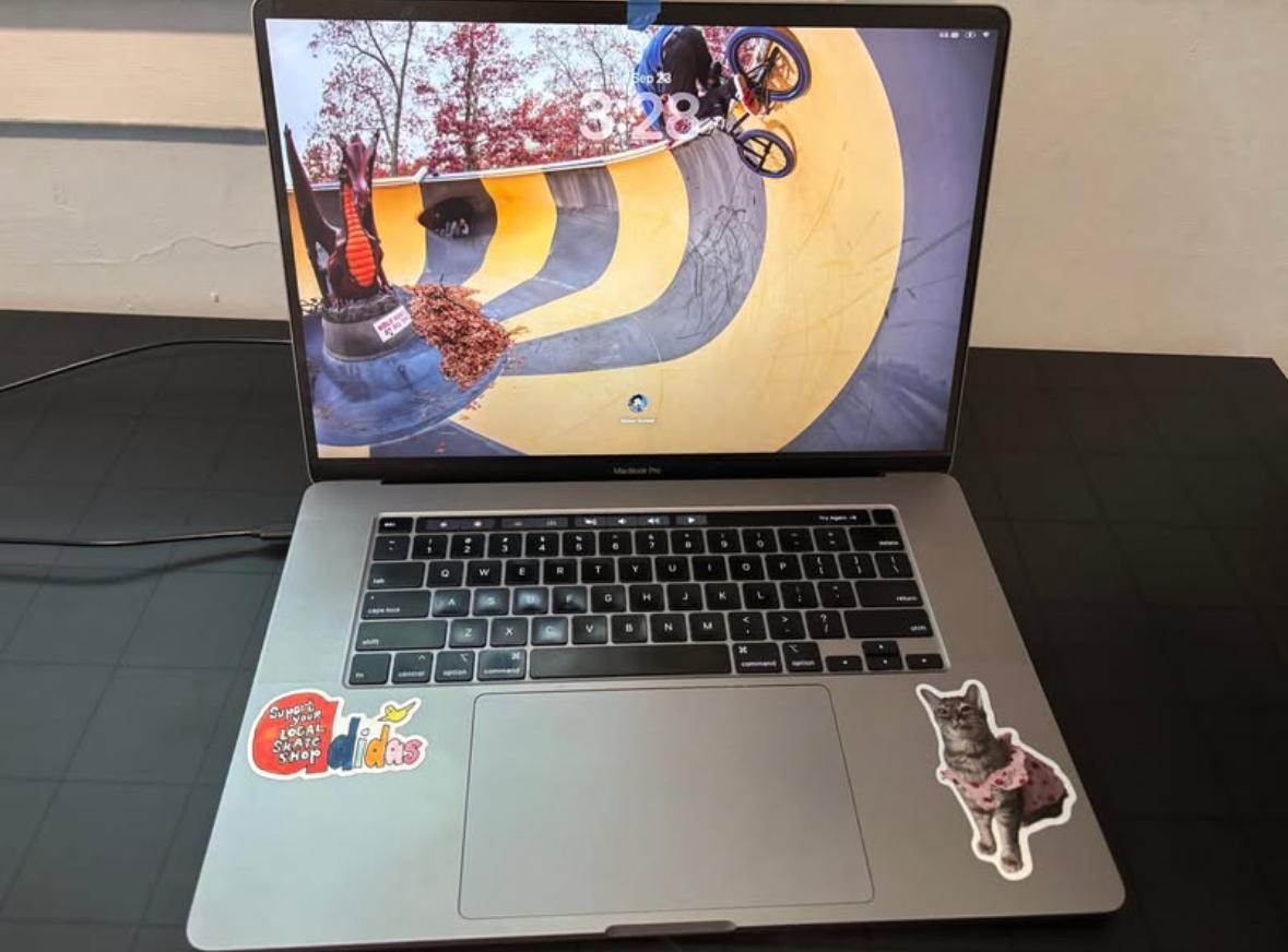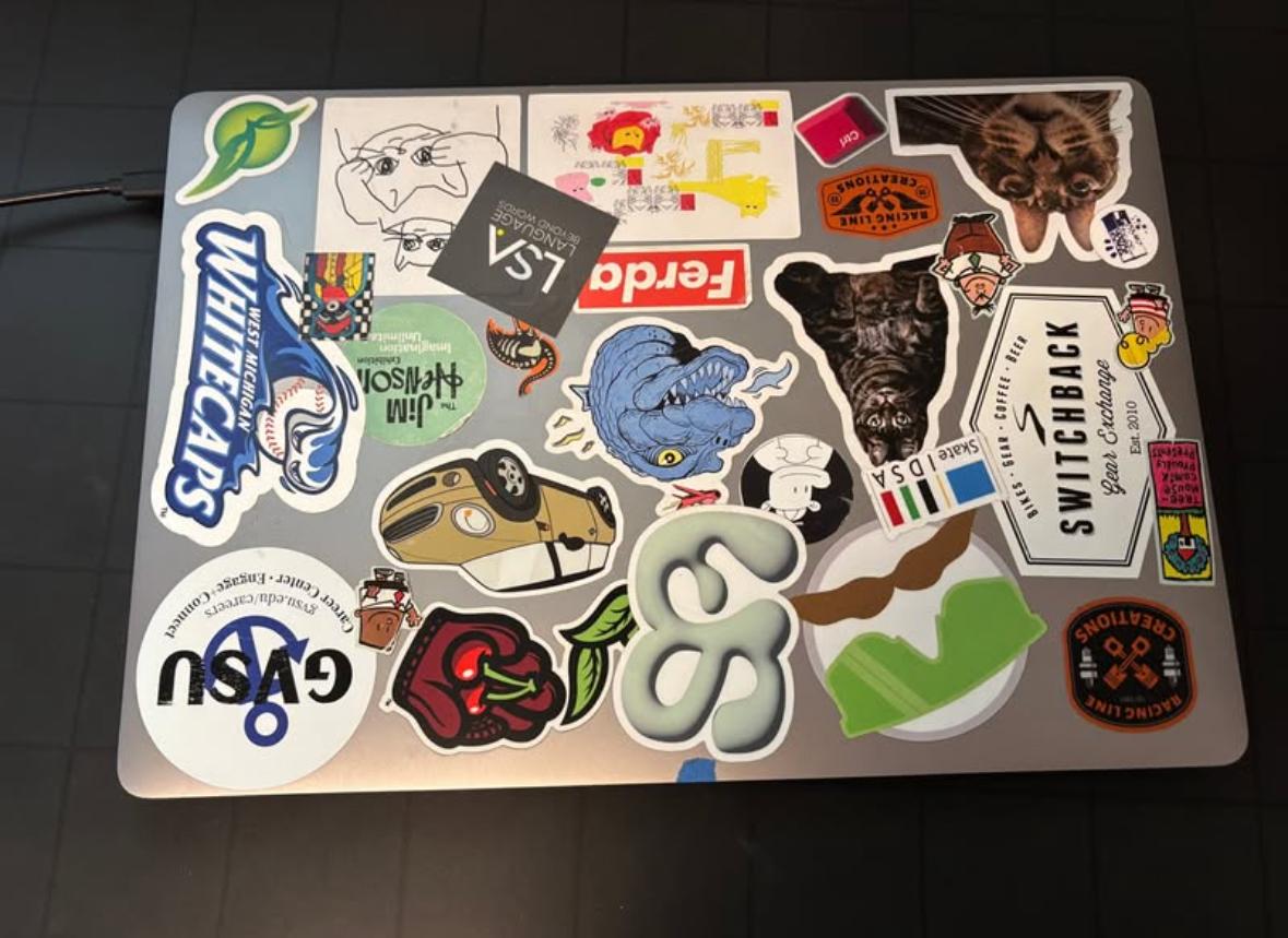 Stickers on the cover of the laptop and some scratches on the bottom of the case