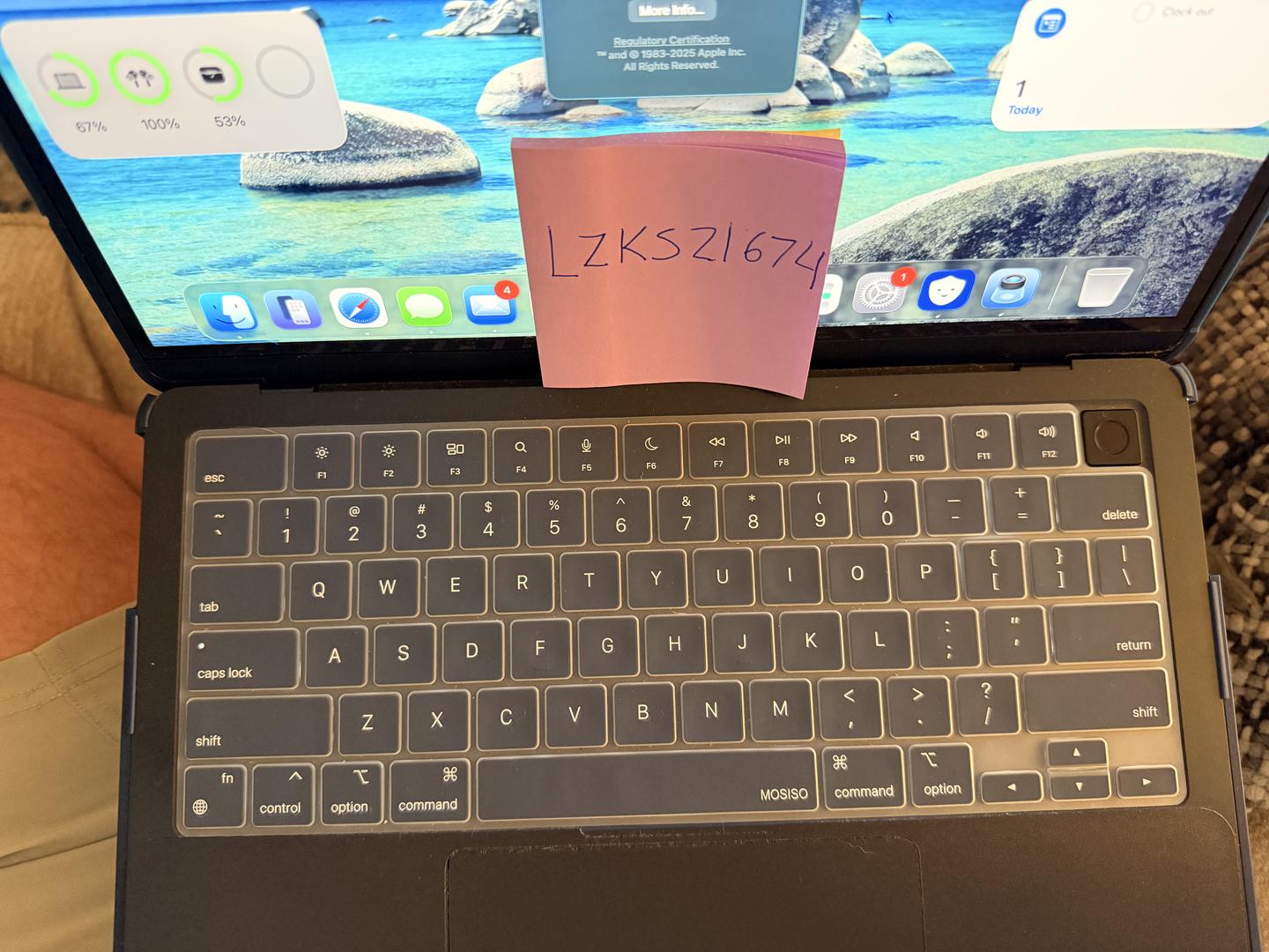 Has been in a case and screen protector since it came out of the box. There is a small issue in the top right corner, I think it's just the screen protector. It's, not on the actual screen of the Mac. There is still 46 days to add apple care to it as well if you want to activate it