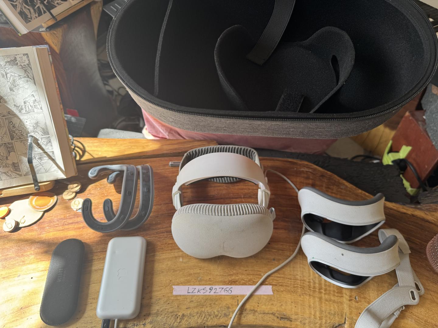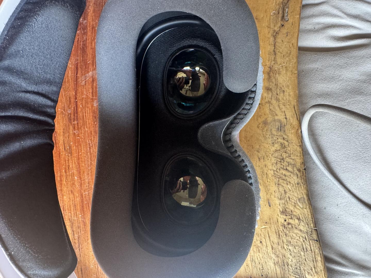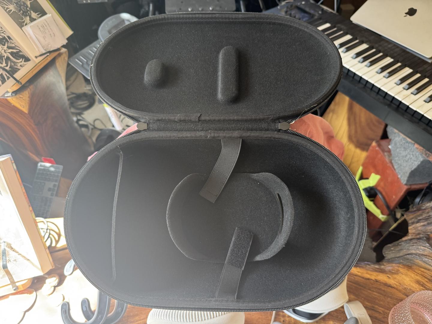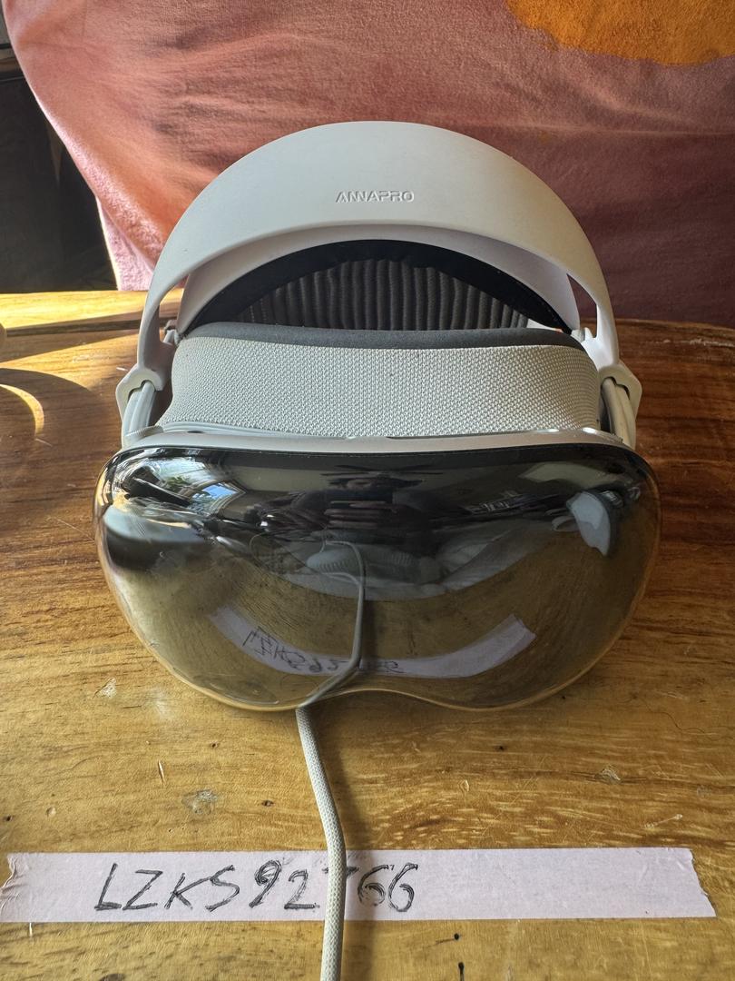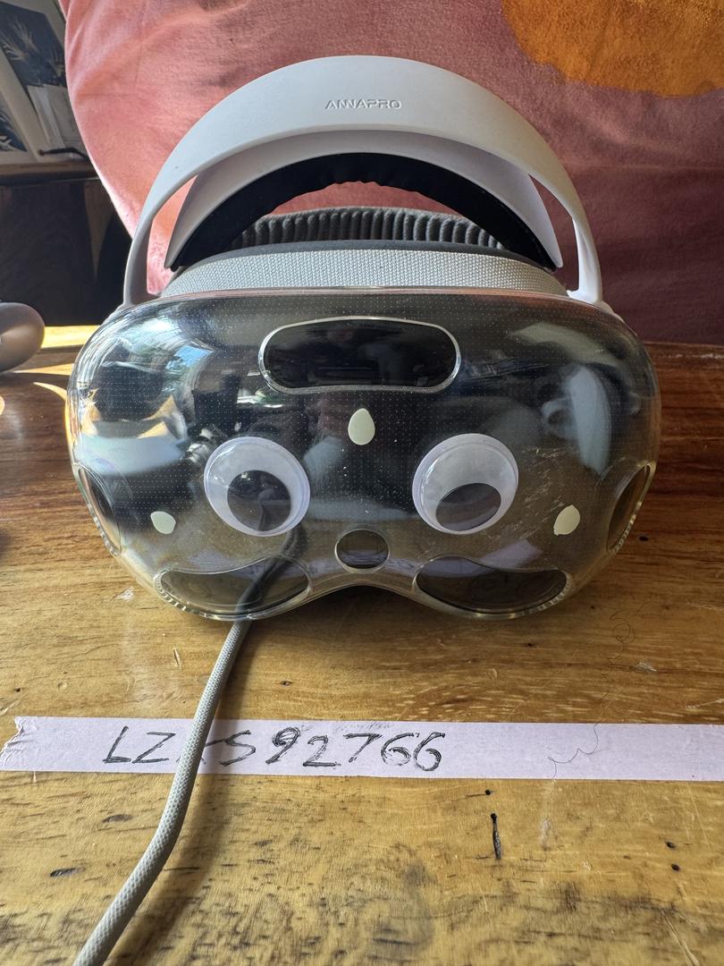 This Apple Vision Pro has a 14w and 21w light seal, the W+ eye masks for each seal an annapro V2 headband (the most comfortable headband out performs Apple, the original head band size S, and the original over the top head band size S, a kiwi eye mask for storage to block lenses from light, and a 3rd party travel case. It also has a 3rd party cover that we placed over the front visor to protect it that is a little goofy (google eyes on it) that you can keep if you want. Got this for a potential live-streaming of our creative day project but after a year the software just isn’t there for live stream + mirroring a Mac at the same time so we are going for a more integrated setup.