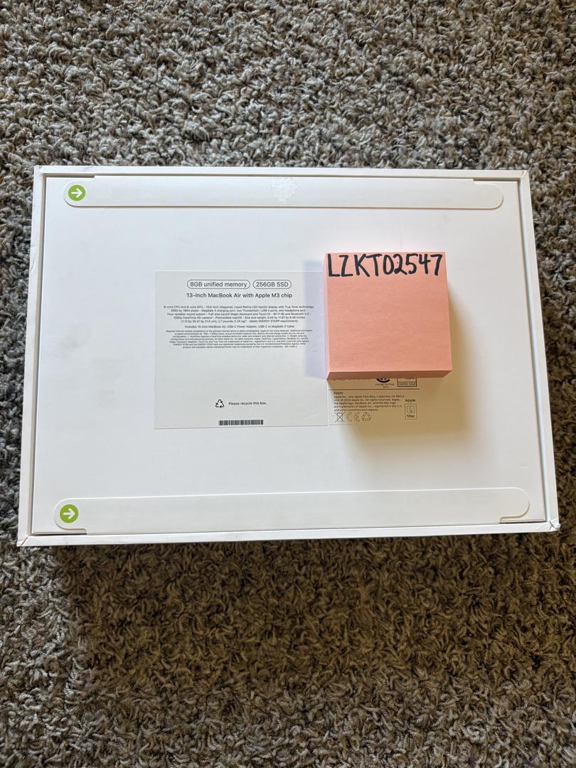 Apple MacBook Air 13" 2024 Laptop M3 chip 8GB RAM 256GB SSD Starlight MRXT3LL/A Sealed
