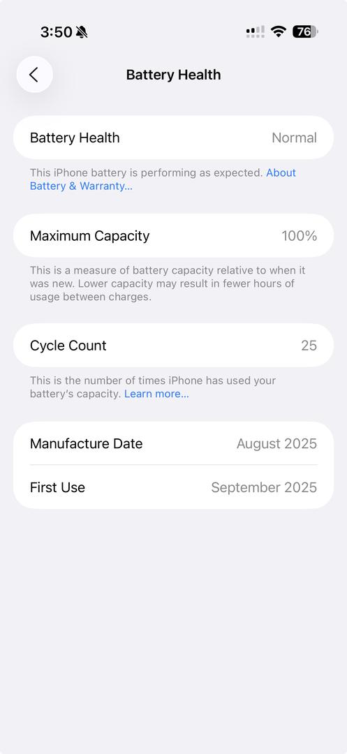A 100% battery health iPhone Air I got on launch day from the Apple Park Visitor Center in Cupertino.