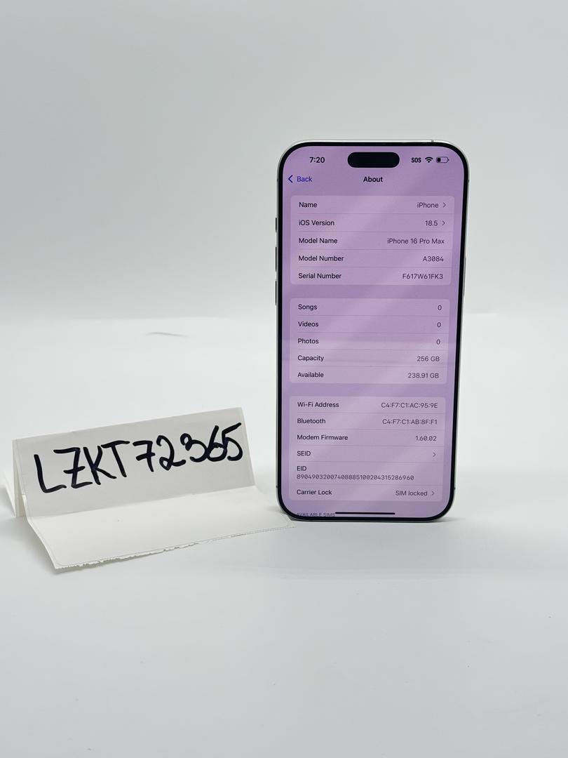 T-Mobile Apple iPhone 16 Pro Max 256 GB Natural Titanium 100% BH A3084 MYW63LL/A. No Charger Included. Phone Only. The device is fully tested and works seamlessly with T-Mobile, ensuring you stay connected no matter where you are. With a remarkable battery health of 100%, you can enjoy prolonged use without the worry of frequent recharges.