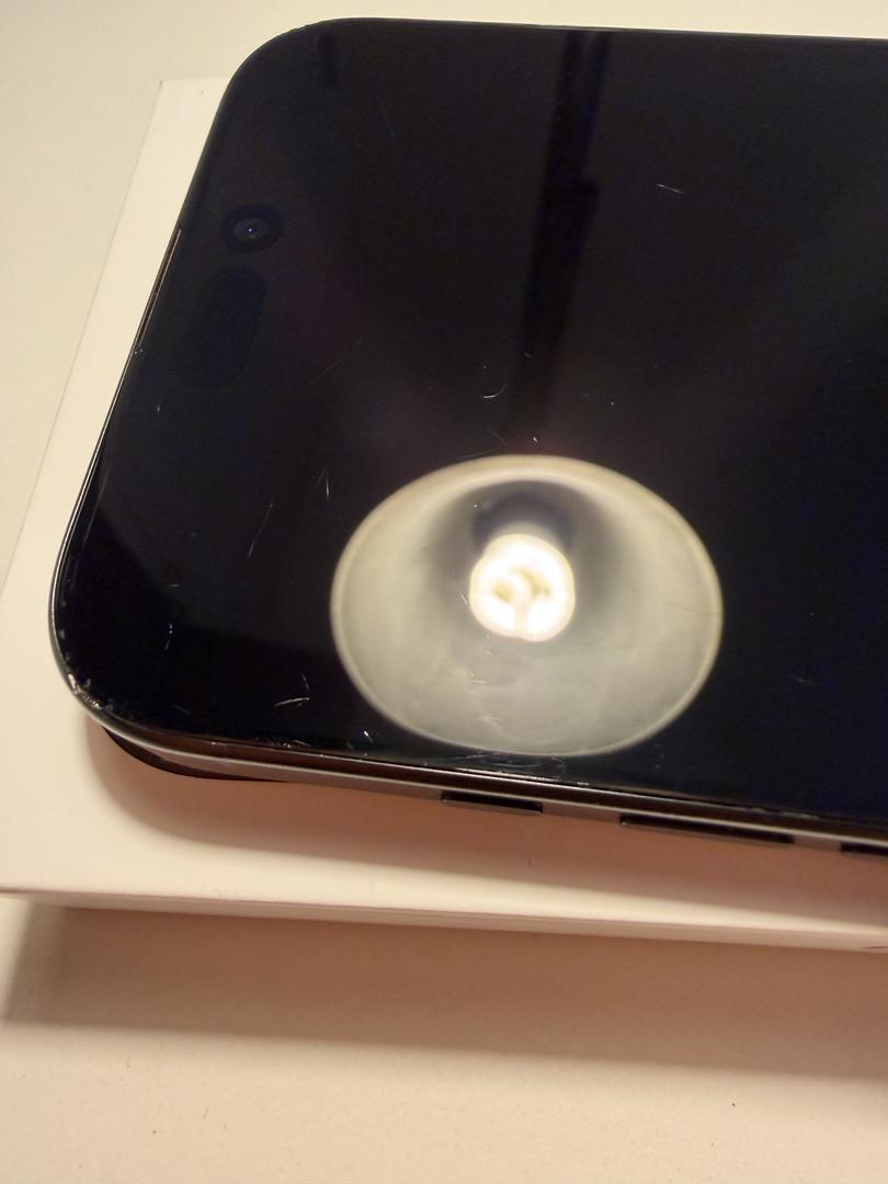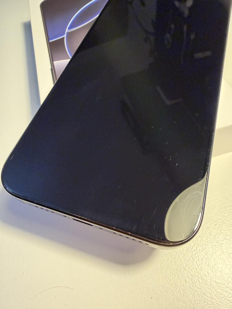 Scuffs on the titanium band near the top right and left of the front of the device, as well as the bottom near the microphones. More scuffs on the band towards the back of the device on the top left corner, right side near the top and bottom antennas, and finally near the bottom right and left corners of the band. Additionally there are minor scuffs around all 3 of the camera lenses, which do not affect camera performance. The screen is full of micro scratches, which I have done my best to show in multiple photos from different angles.