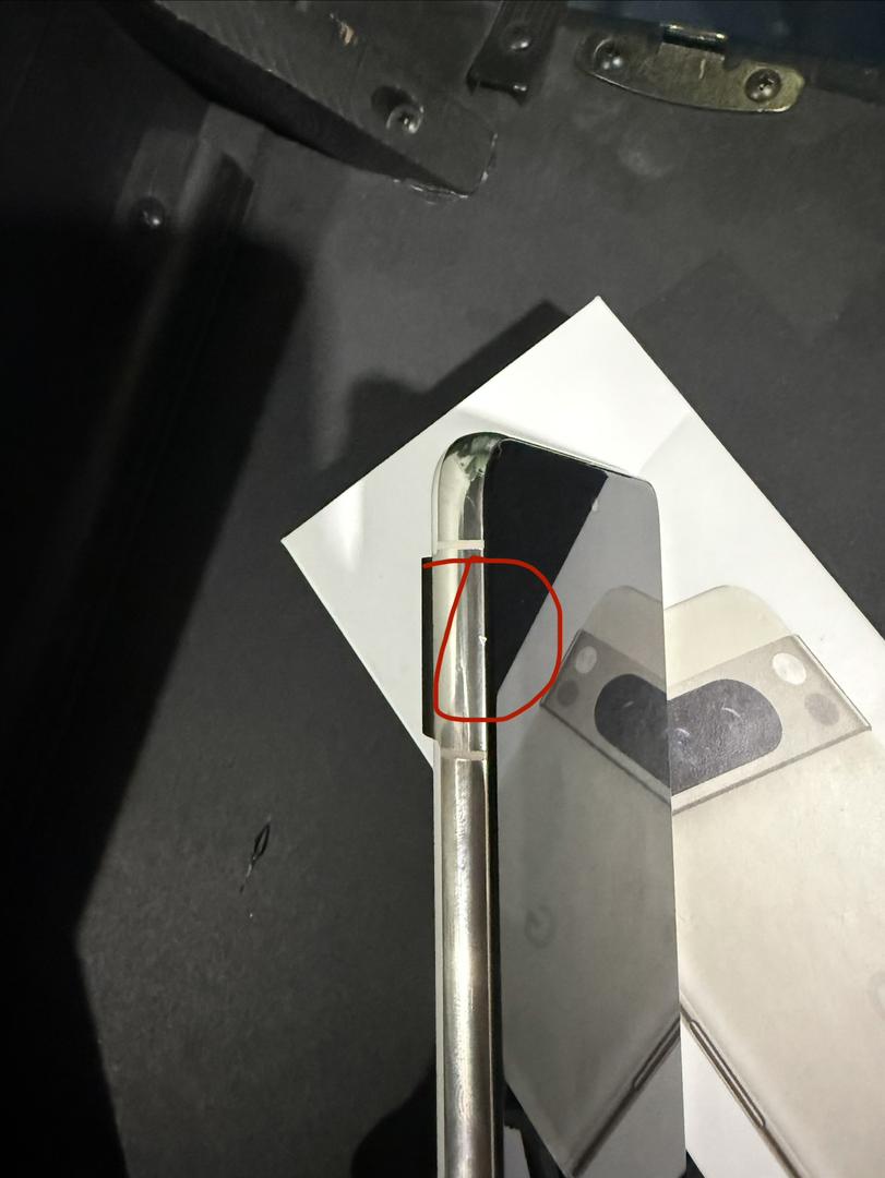There is a small nick on the outer frame between the antennas on the left hand side of the phone. The rest of the phone is in MINT condition