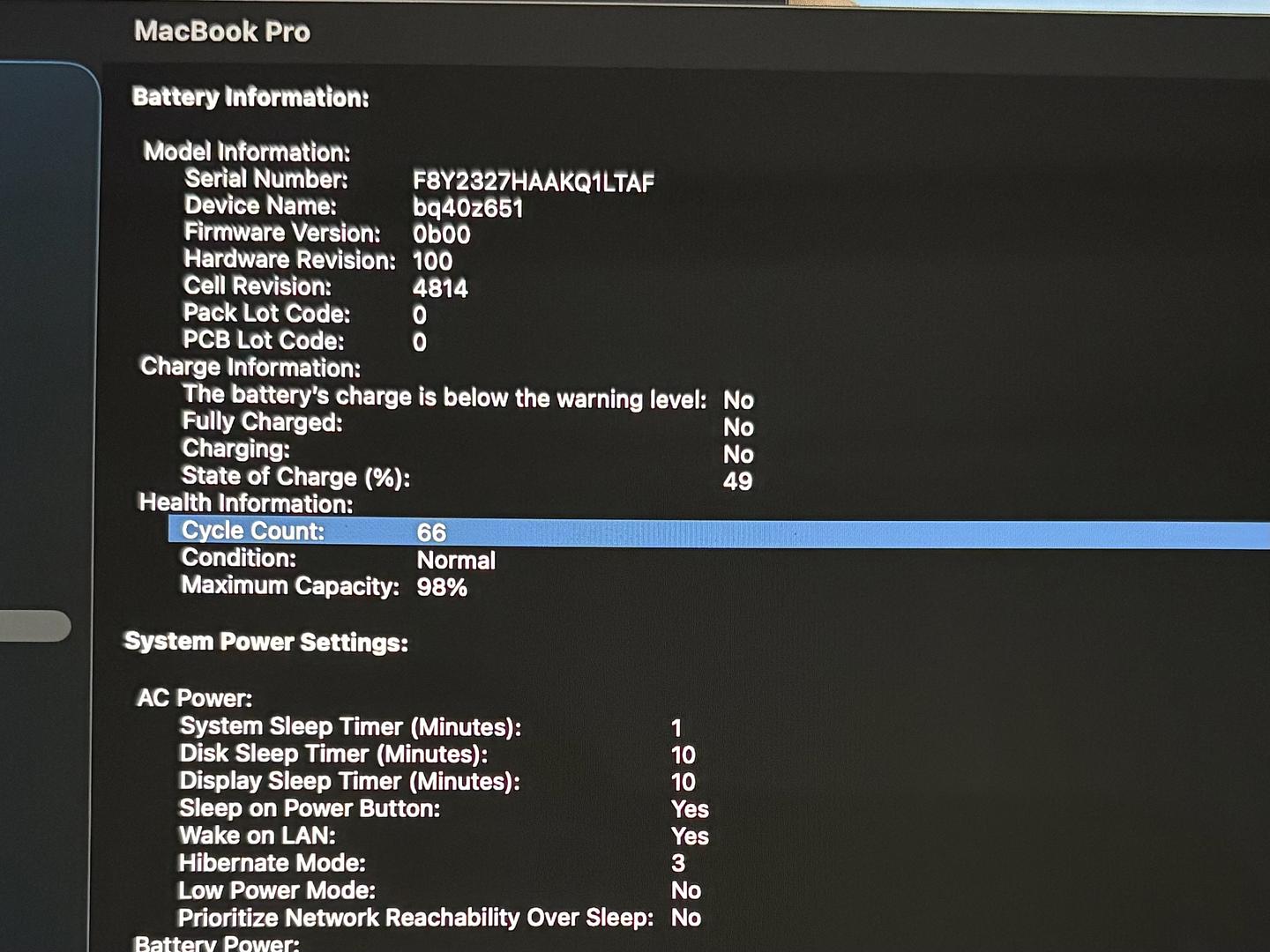 Battery is at 66 cycles.