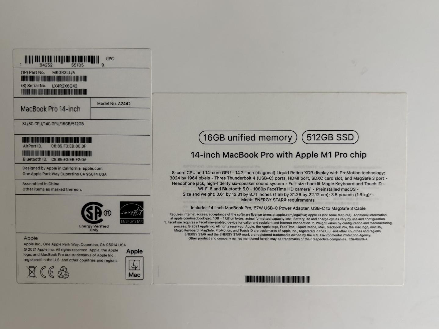 MacBook Pro 14-inch, M1 Pro, 16GB / 512 GB, 8-core CPU / 14-core GPU