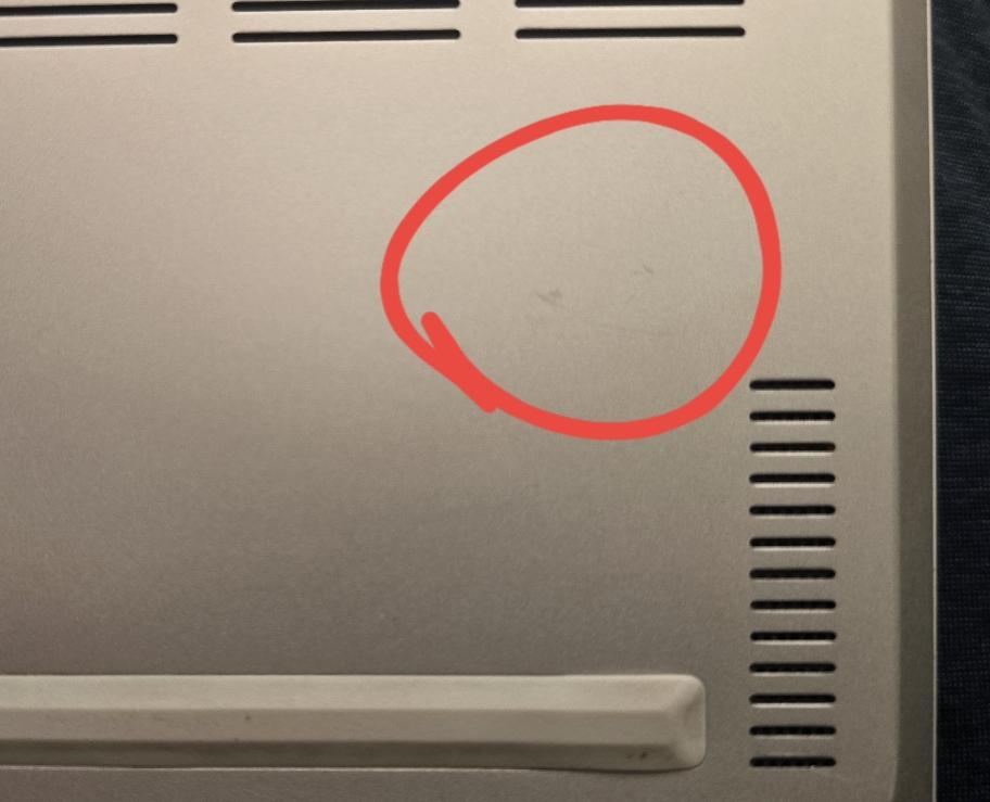 Has a couple of minor scuffs on the bottom. Barely noticeable. I cant find any scuffs elsewhere. Comes with it's original box! Yay!