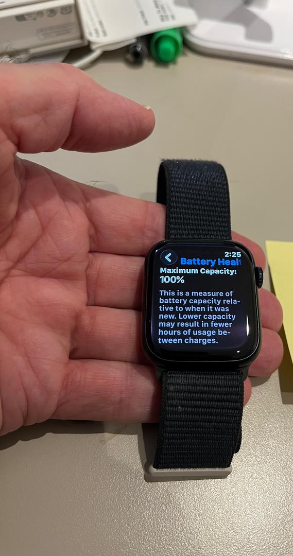 Beautiful used Apple Watch Series 9 45mm in Mint condition. In addition to the two new OEM Apple Sport Bands (Midnight and Abyss), this purchase includes a new OEM Apple USB-C Charging Cable. ALL original packaging is also included. The Sports Loop Band shown in the photos is NOT included with this purchase. Please let me know if you have questions. Shipping only to Continental US. Please note, no returns unless the condition of the watch is materially different from this listing.