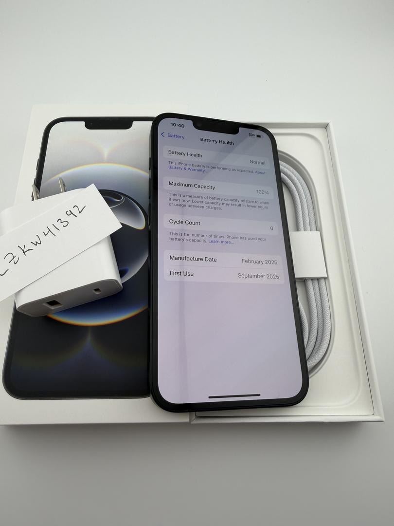 The phone's battery shows a 0 cycle count (basically new)