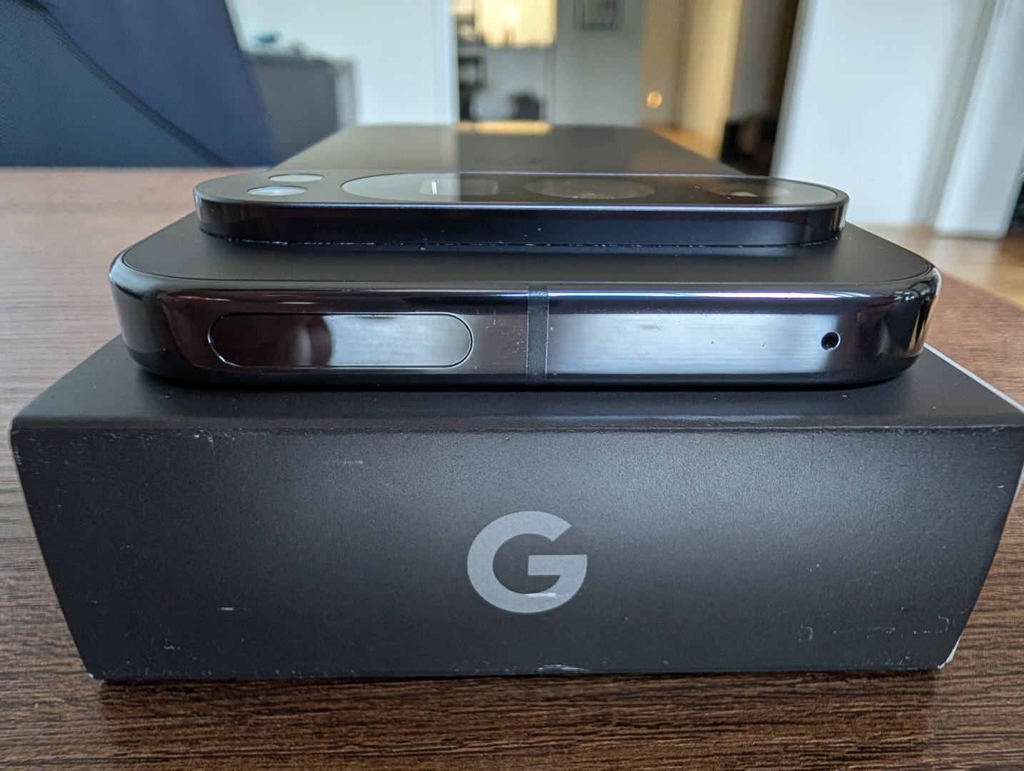 Minor wearing marks because of the case (on the volume button side and bottom), see pics for more details.
