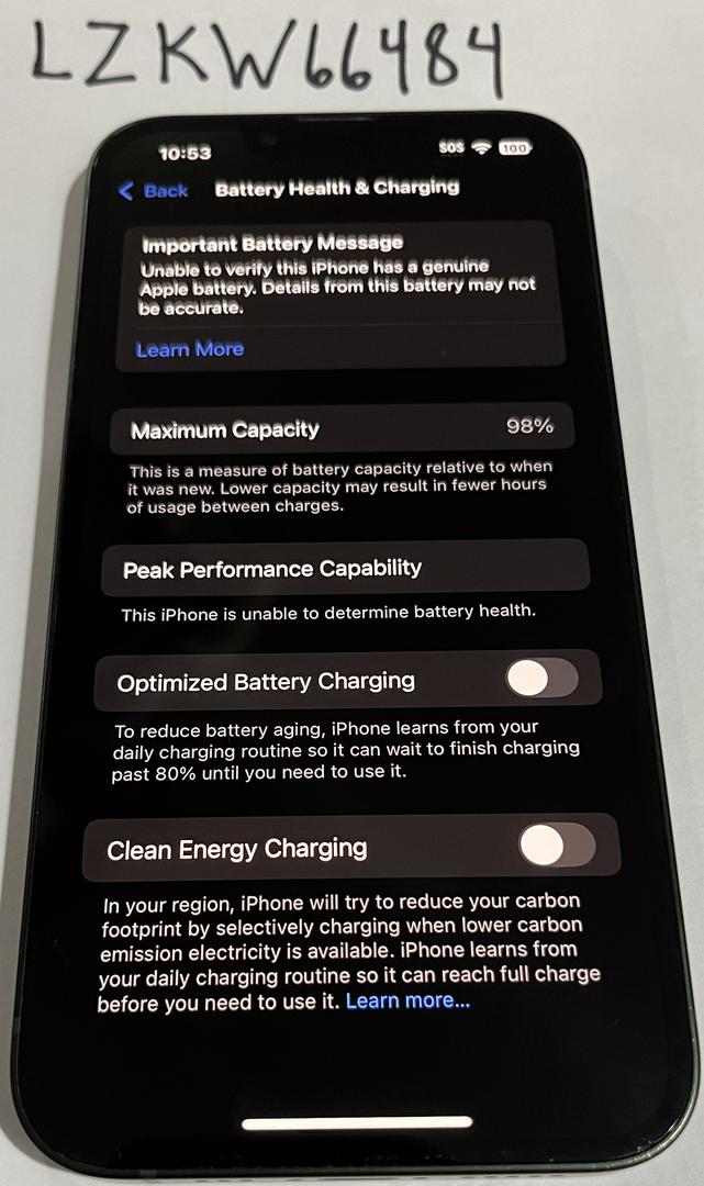 This iPhone 13 is in near-mint condition and works perfectly. It features a 256GB storage capacity and a stunning green finish. The battery has been professionally replaced with a high-quality after-market unit currently showing 98% health, so you’ll get excellent battery life.