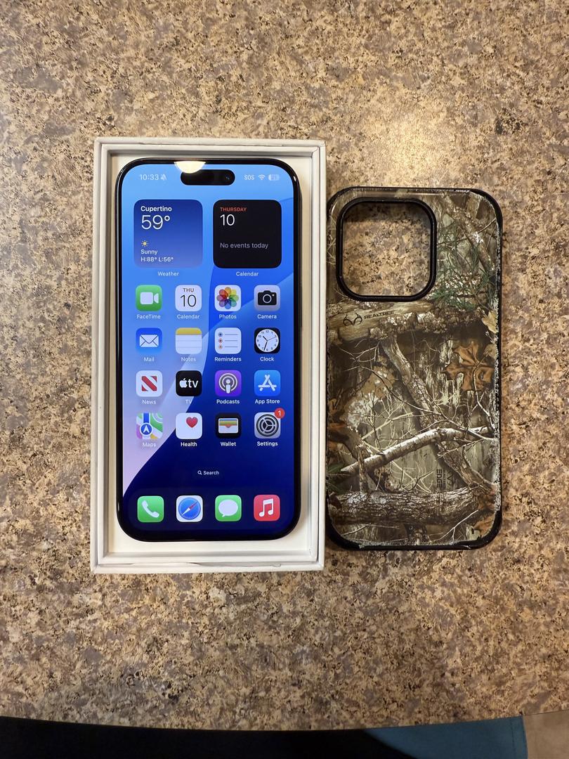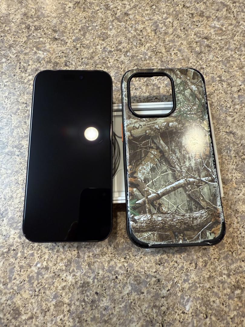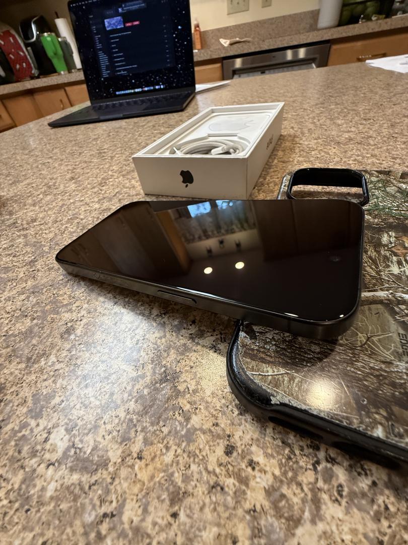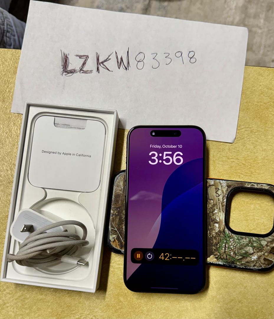 This listing is a for a 15 pro black titanium 256gb storage - included is the box, papers, apple logo sticker and a 20w charger with usbc to usbc cord. Additionally, I’m throwing in my old realtree camouflage otter box symmetry(???) case!