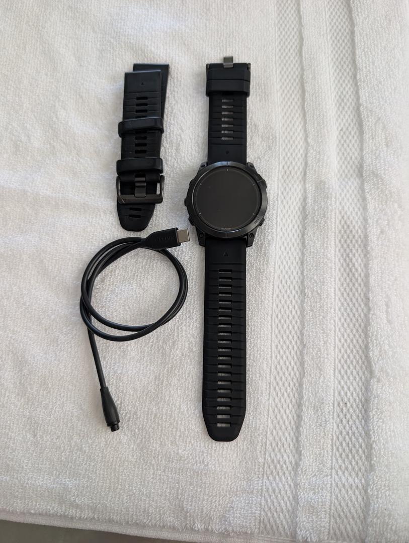 Comes with an extra brand new Garmin band, and the charger cable. No original box.