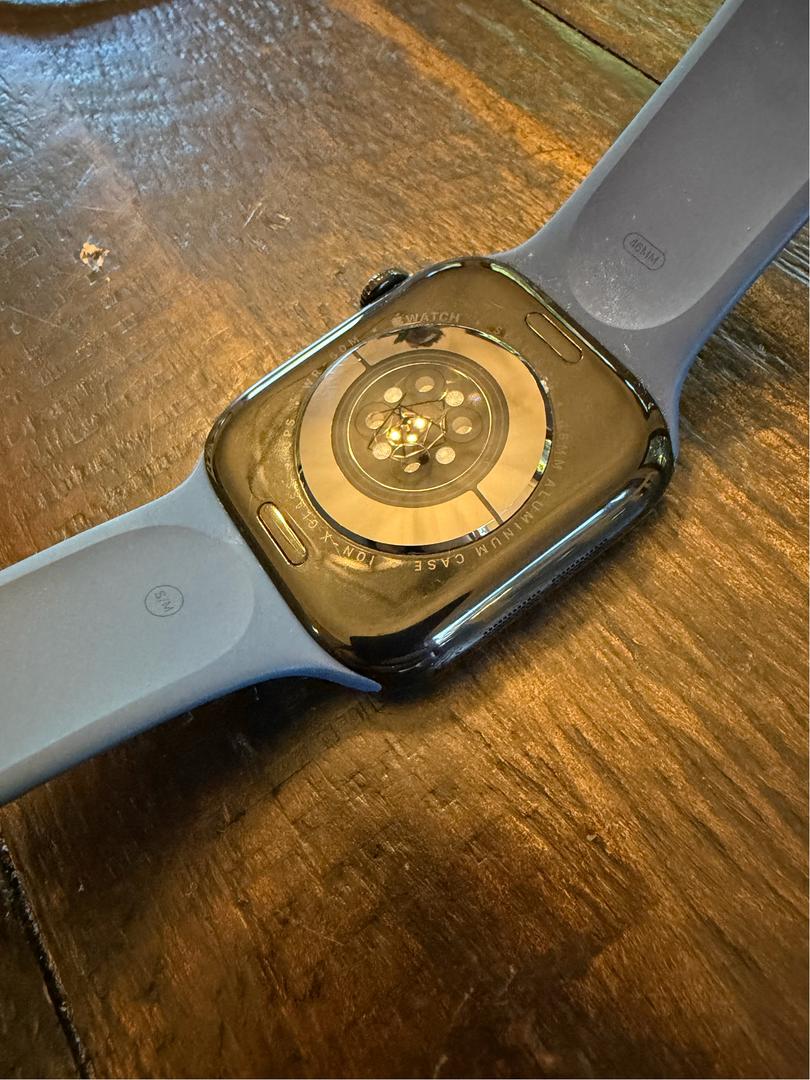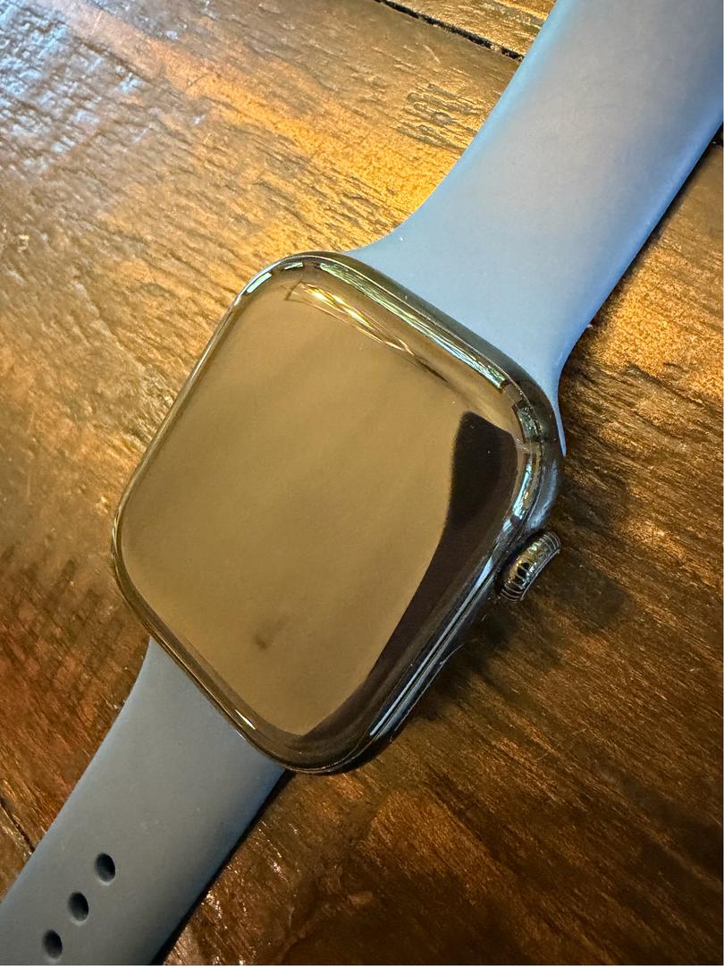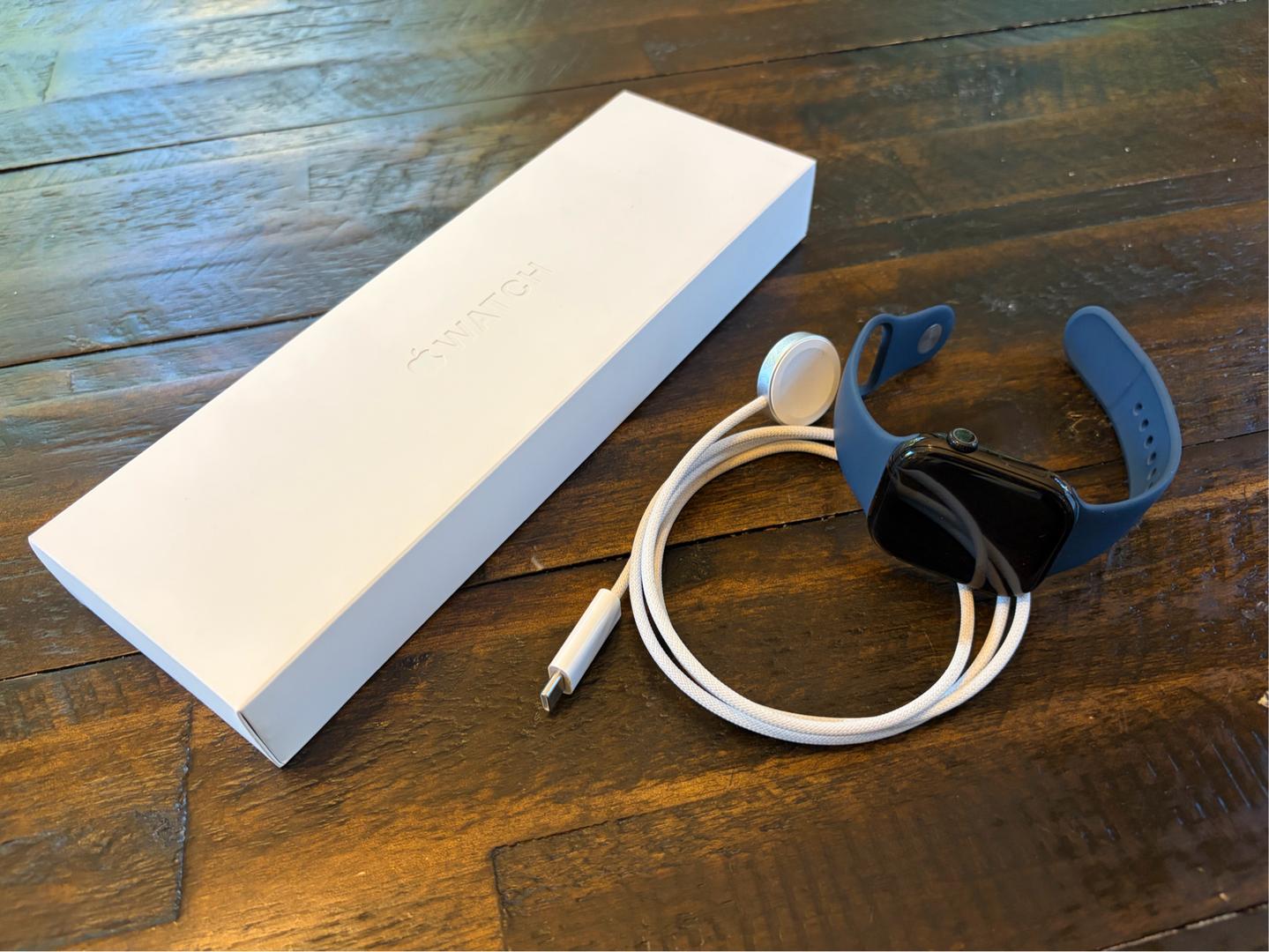 Iβm selling my personal Apple Watch because I recently upgraded to the Series 11. The screen has had a protector on it since day one, so itβs in excellent condition. The watch is black and comes with a blue sport band. It also comes with the original charging cable and packaging. It has been well cared for and works perfectly. Feel free to reach out if you have any questions.