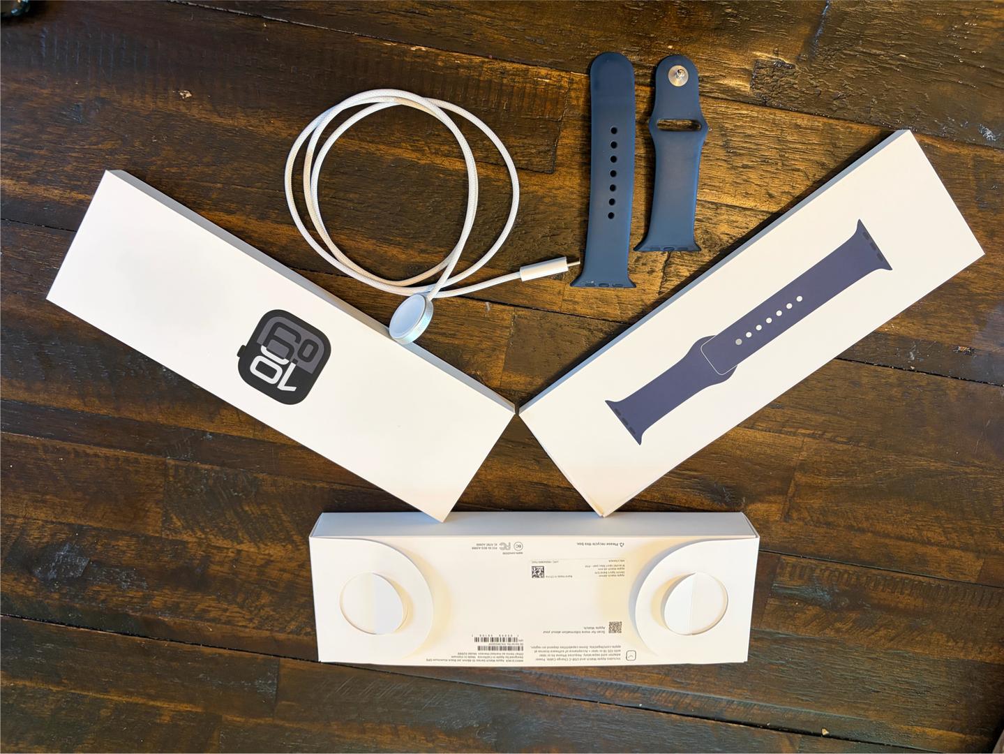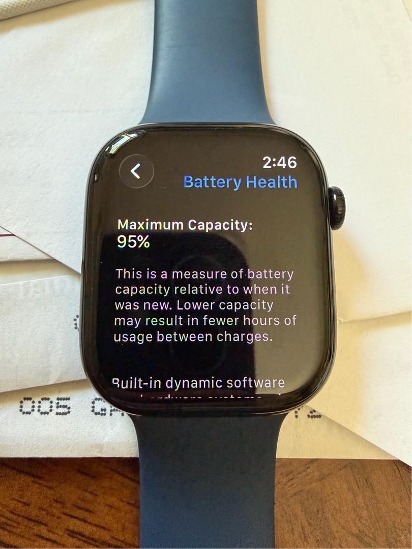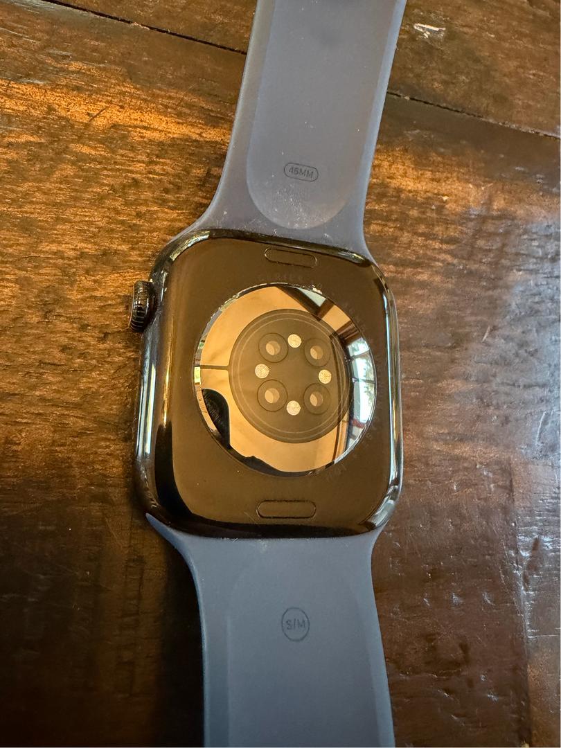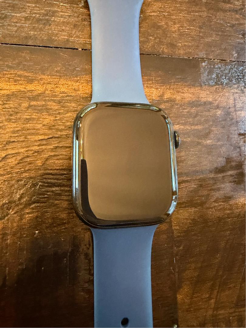 Iβm selling my personal Apple Watch because I recently upgraded to the Series 11. The screen has had a protector on it since day one, so itβs in excellent condition. The watch is black and comes with a blue sport band. It also comes with the original charging cable and packaging. It has been well cared for and works perfectly. Feel free to reach out if you have any questions.